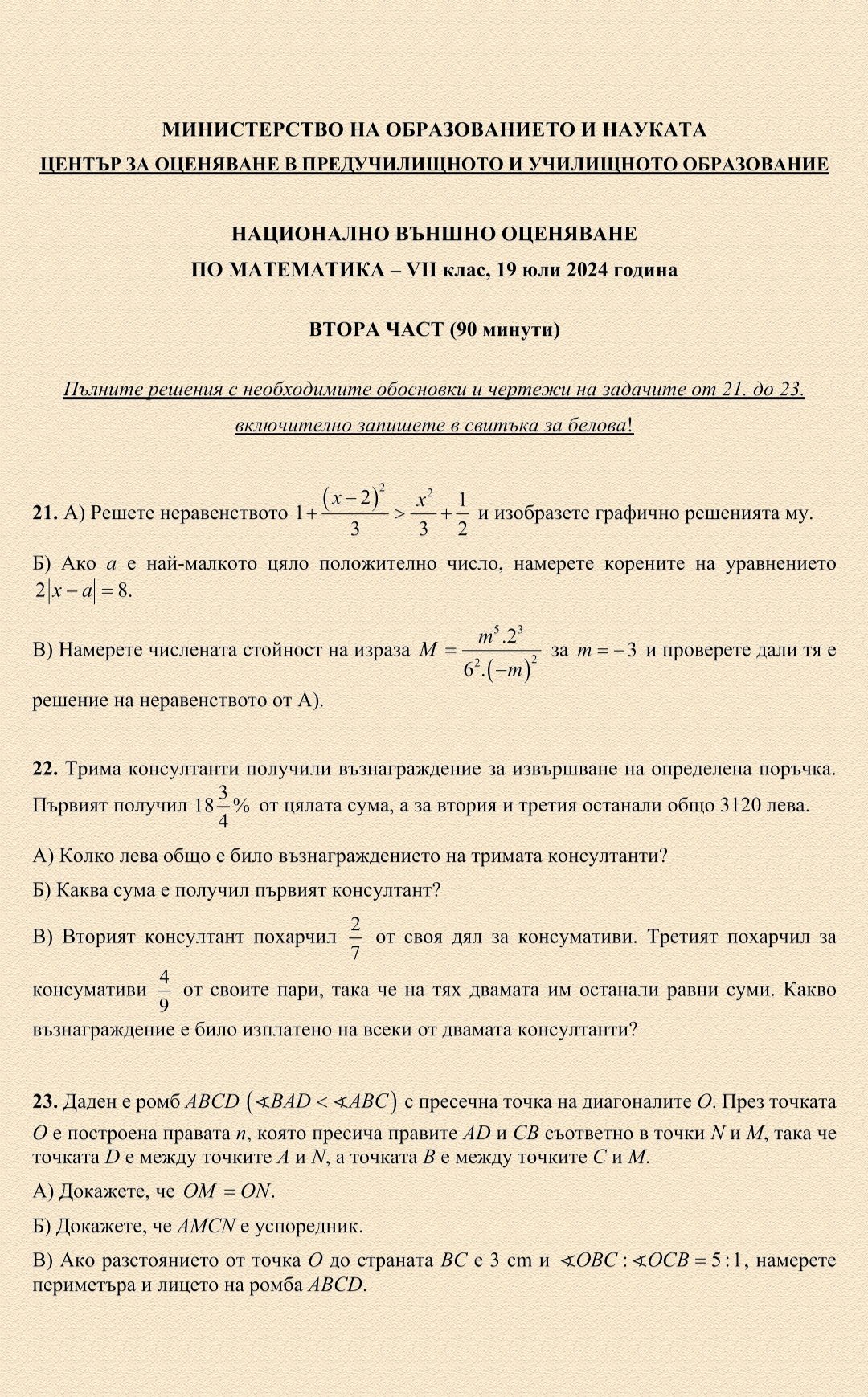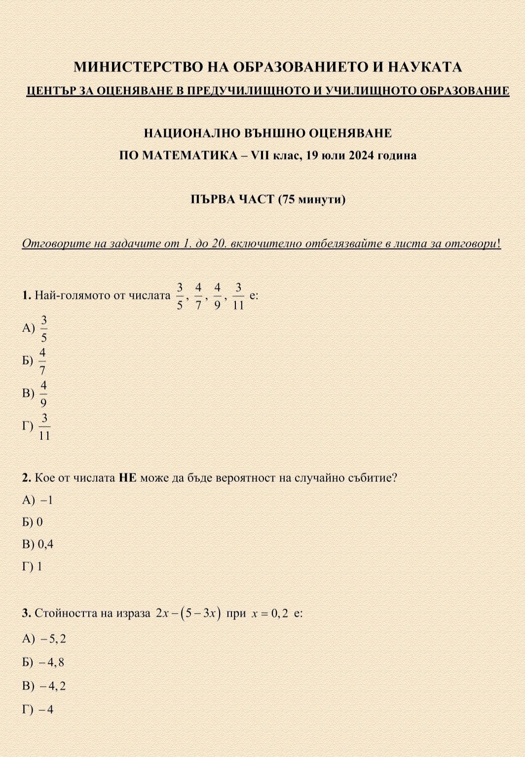 НВО /проведено на допълнителната дата 19.07.2024г./
