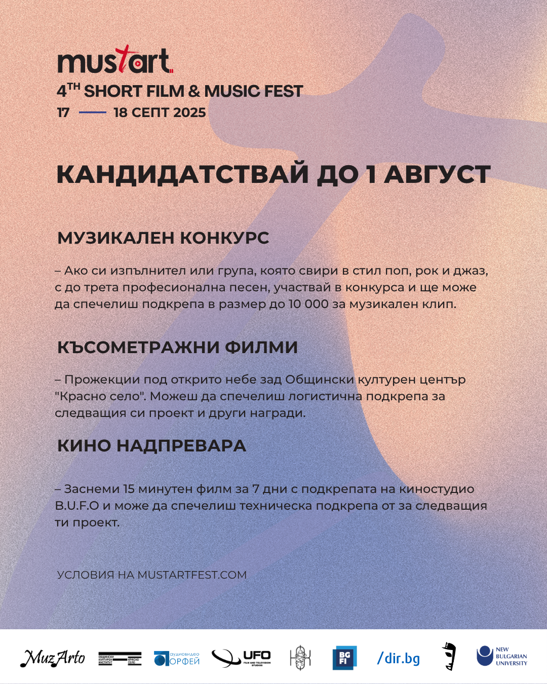 Ако си млад творец; присъедини се към творческото пътуване! Кандидатурите са отворени до 10 август 2025 г. – подробности на: mustartfest.com, FACEBOOK, INSTAGRAM .