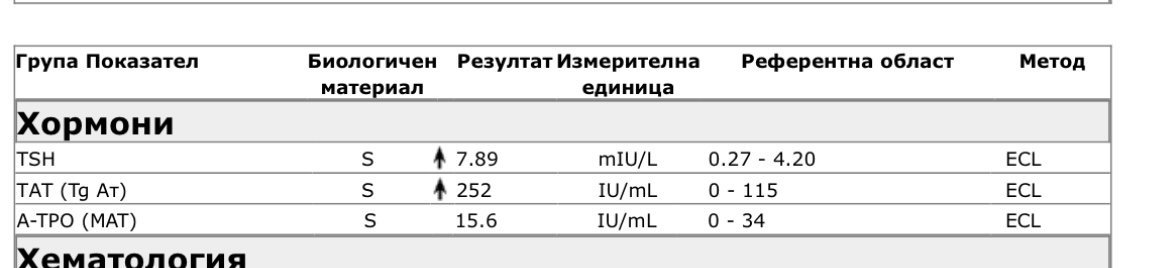 Високи нива на ТСХ и Тат в 10 г.с