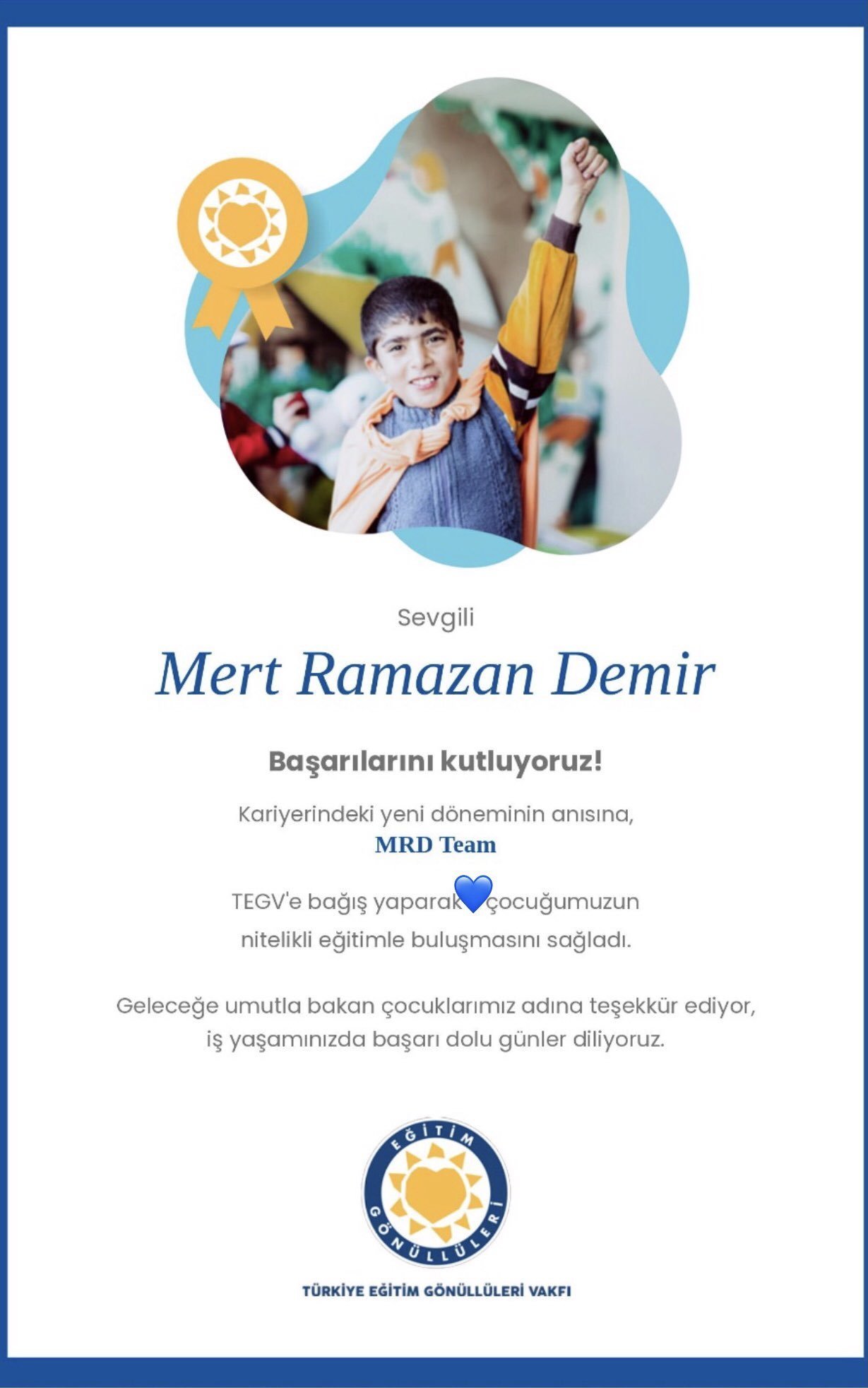 Дарение от фенове на Мерт за фондация за образование на децата Heart Eyes