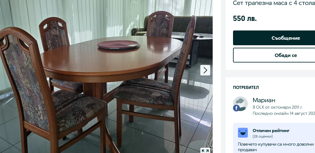 Иначе, белият комплект от Юск го имам. Задължително столчетата се ползват с възглавнички, т.е. +10 лв за брой на стол. Качеството е нормално.
