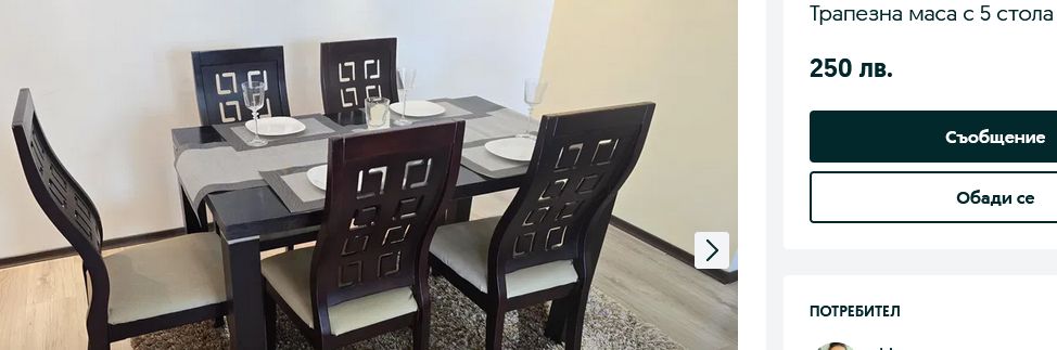 Масата и столовете ги съчетавам с останалите мебели в противен случай се получава интериорна каша. Всички показани са абсолютно различни стилово. По-скоро с тях бих завършила, защото постоянно има на промоция различни модели в Юск, от колкото да почна и да съобразявам другите мебели с тях (по-трудно е така).