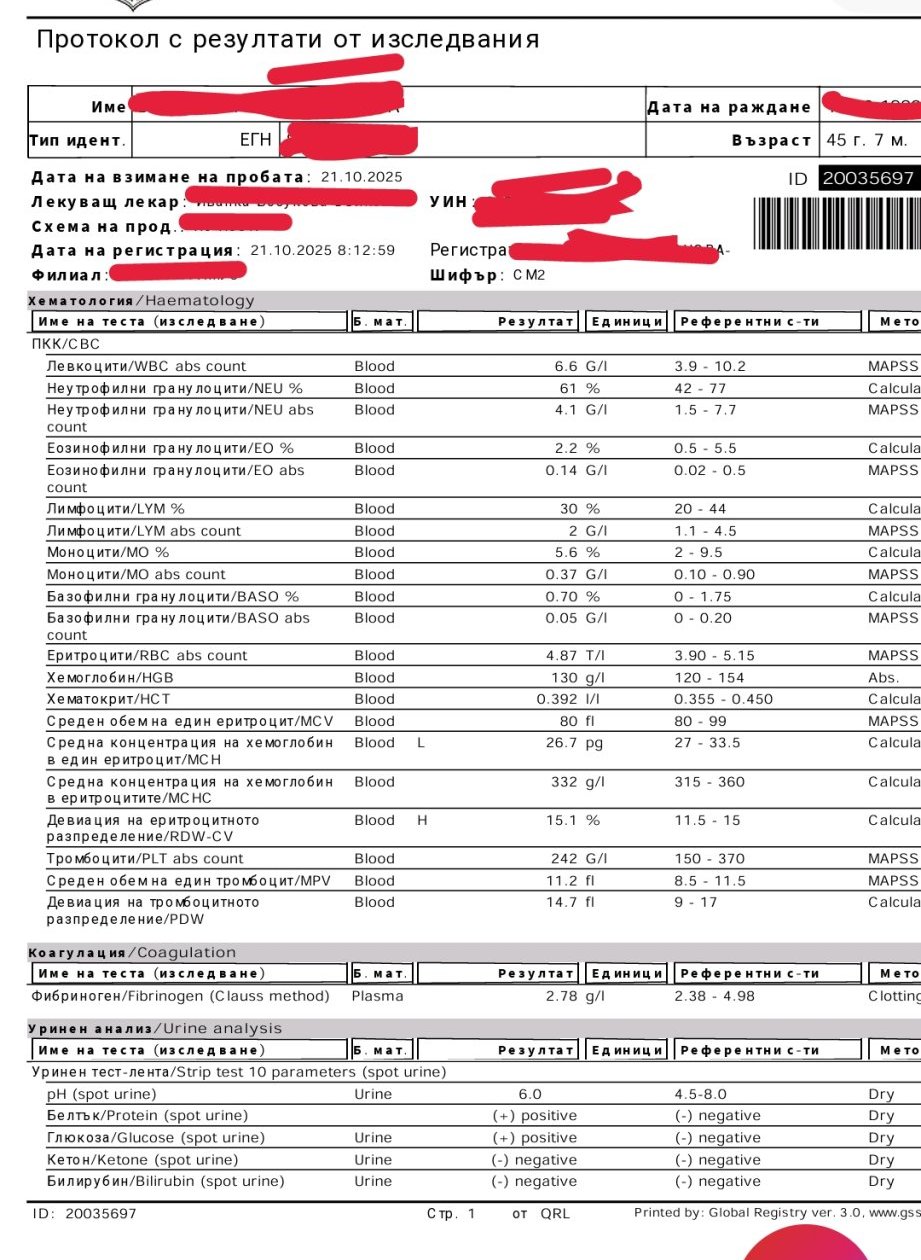Феритина наиста е много нисък! Спешно да се вземат мерки. ПКК как е?