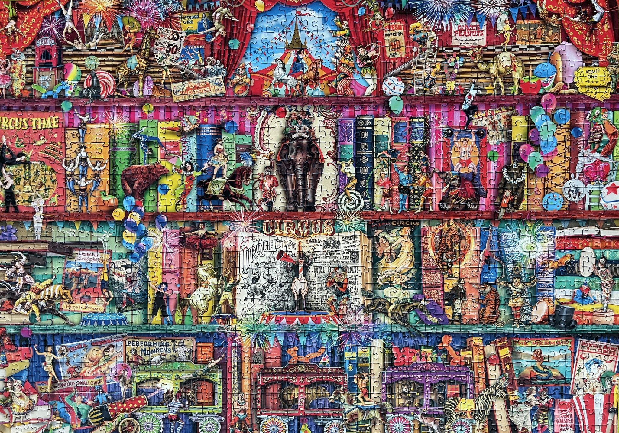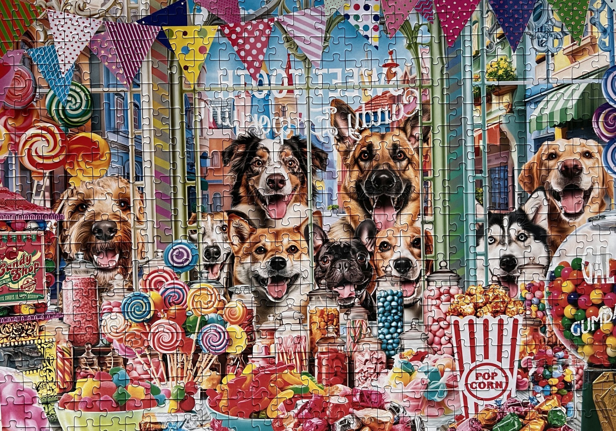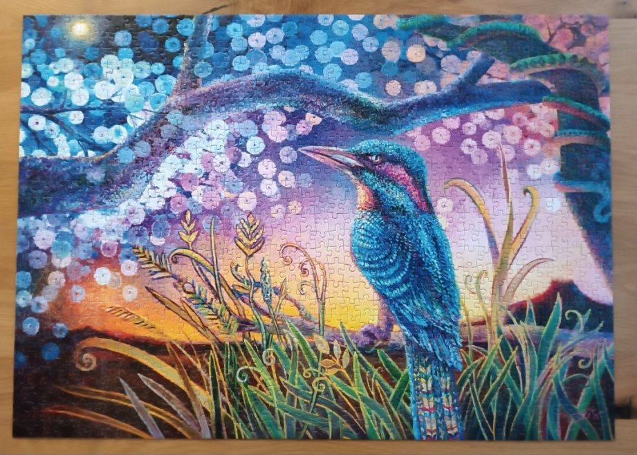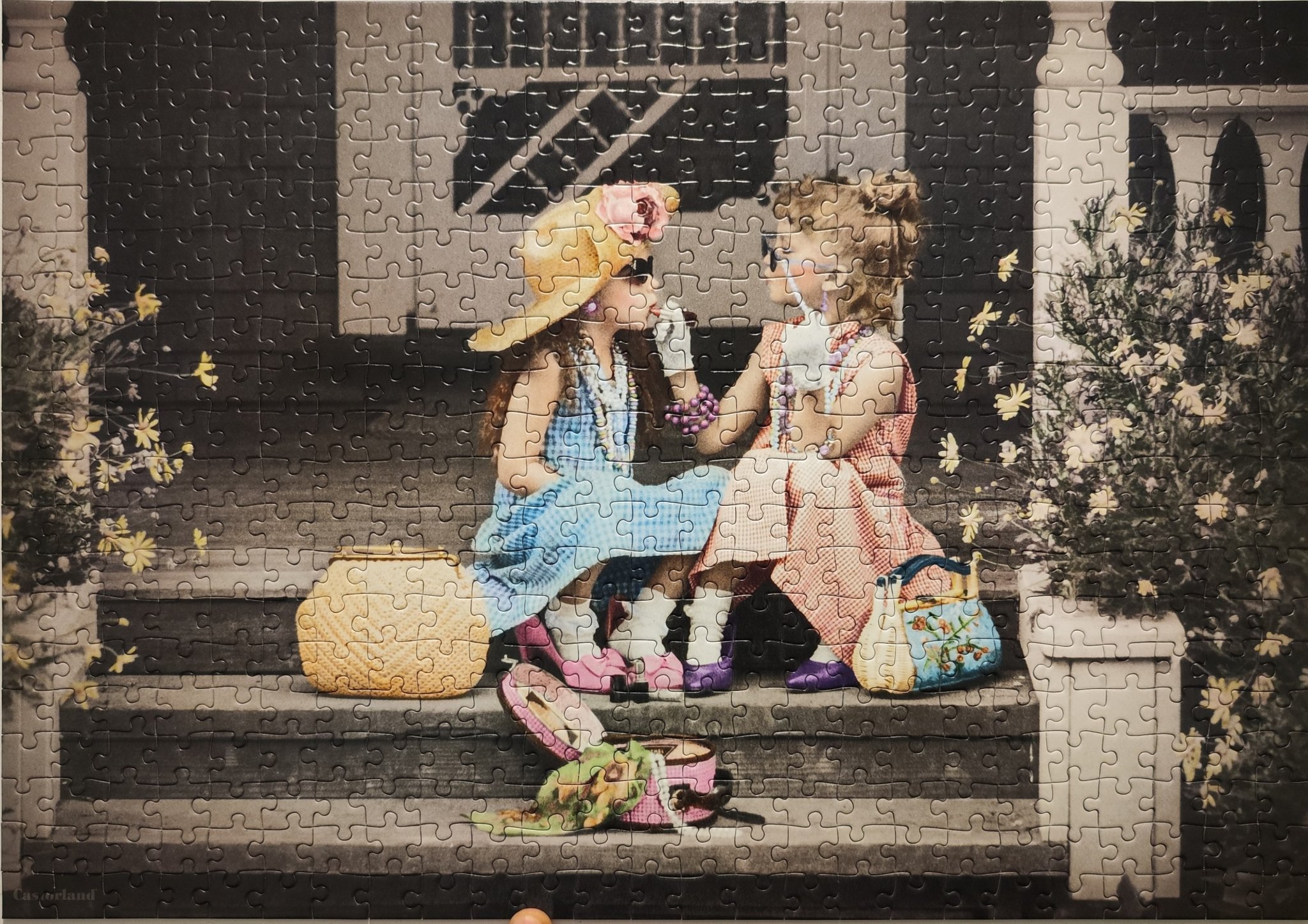 Чета тука как хората мятат по един пъзел 500 части с кафето, аз този го редих 1 месец. Реално ми отне 3 вечери по 1-2 часа: 1 вечер сортирах и редих рамка, 1 вечер наредих синият таван по форма и още 1 вечер саксиите с цветята. Мъжът ми ме го хареса, но ще го закача някъде.