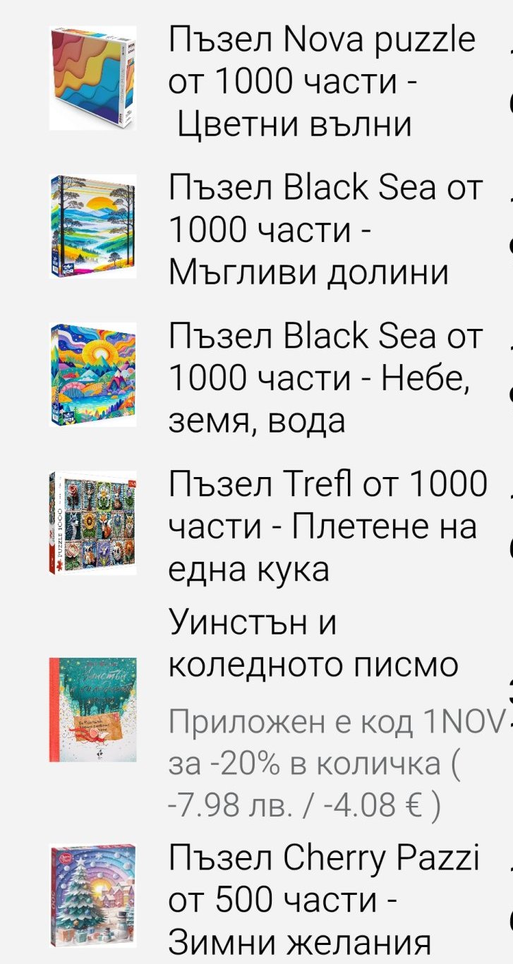 Аз нахвърлях няколко от намаленията, но не знам дали ще поръчвам, май се ослушвам за още намаления Satisfied Лошото е, че единия се изчерпа, но се очакваше.