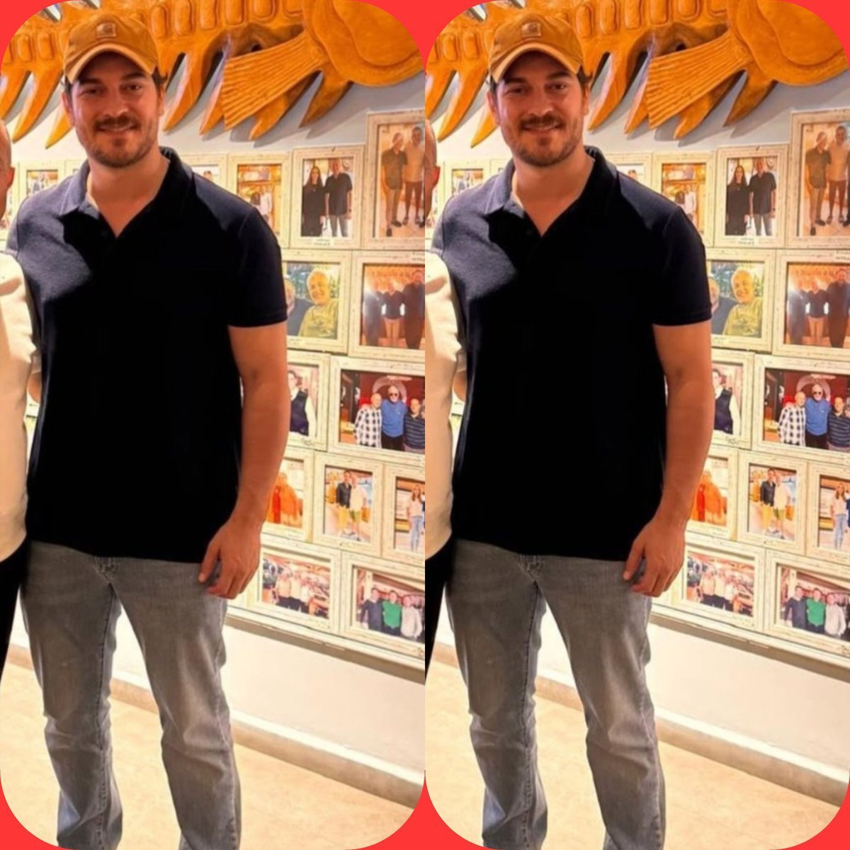 Имаме си ново фото от Измир. ПУ ,ПУ , колко е хубав ,усмихнат дори и в неглиже стил.  Heart Eyes блестиииии ⭐⭐⭐✨☀️ Свежарка е. Какво прави там заради сериала ли или Йок ? Почивка ли има ? Този рибок закачен на стената.... Не е  случайно  мястото Wink