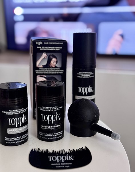 Включвам се и аз с лични впечатления за кератиновите фибри за коса Toppik. Започвам с уточнението, че винаги съм имала тънка, но не рядка коса. За съжаление, преди десетина години започна борбата ми с тежък косопад, причинен от автоимунно заболяване и дефицит на витамини. Който се е сблъсквал с подобен проблем знае колко силно влияе на самочувствието и колко трудно е да се намери решение, което хем да изглежда естествено, хем да не изисква часове пред огледалото.