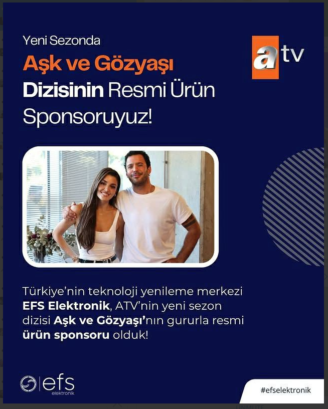 EFS Elektronik официално обяви, че е официален спонсор на поредицата „Aşk ve Gözyaşı/Любов и сълзи“, а Nemesis Medical Kosmetik също стана спонсор на поредицата.