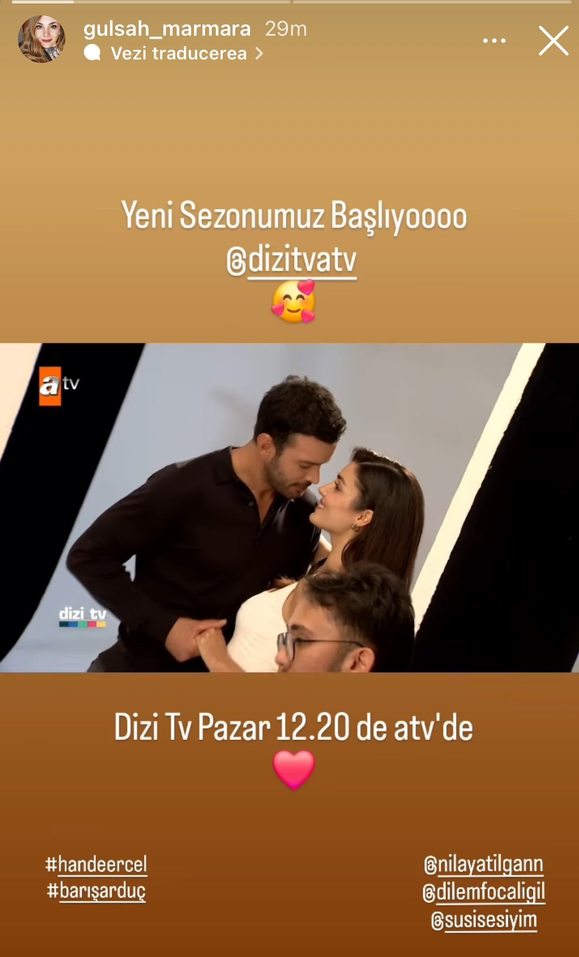 „След натоварена седмица, първият епизод от сезона е готов. Желая ви страхотен сезон на DiziTv утре в неделя по ATV.“ ❤️‍🔥