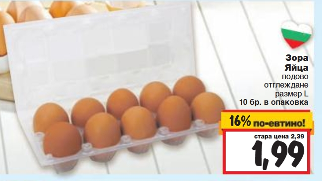 В момента цената се движи 40-60ст, а трябва да се има предвид, че яйцата са един от продуктите с най-силно повишена цена, не само у нас, а и по цял свят.