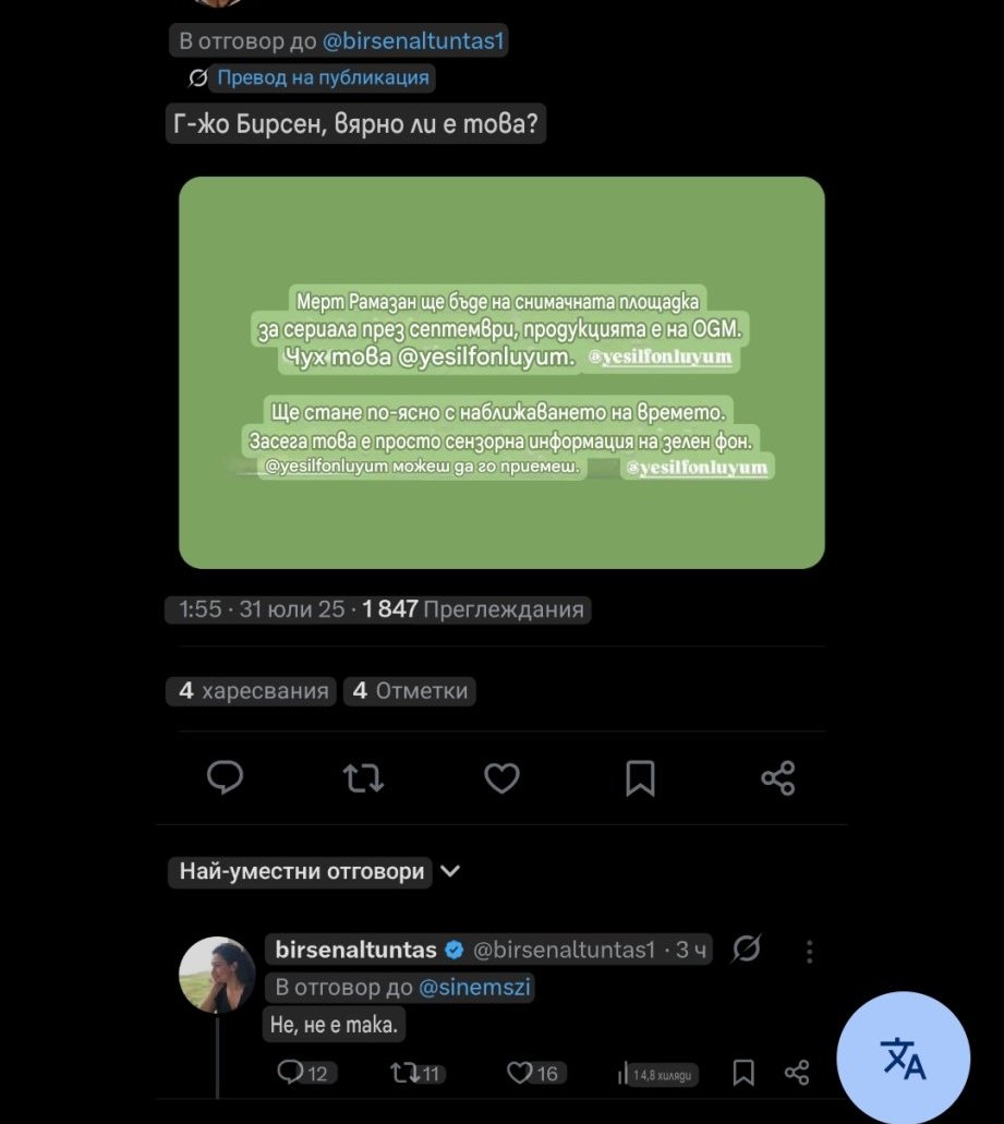 За сериалът на Мерт тече подготовка, не е сет. Така пишат в Х.