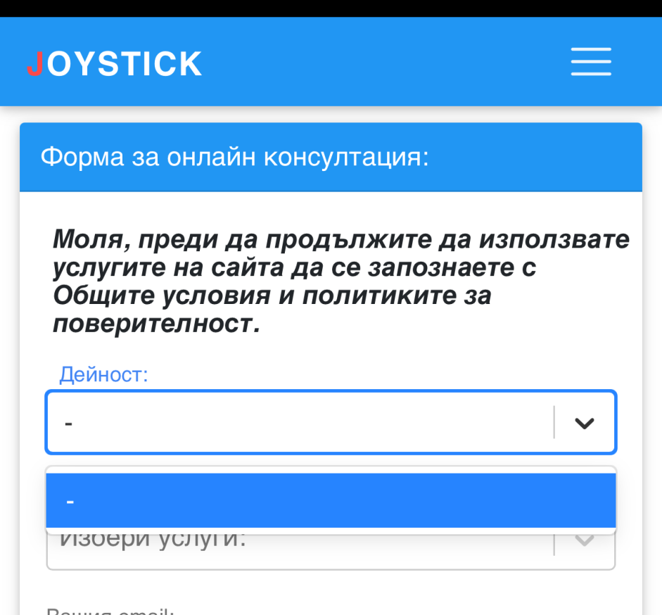 От падащото меню нищо “не пада” и не ми дава да продължа. Аз ли нещо не правя като хората?