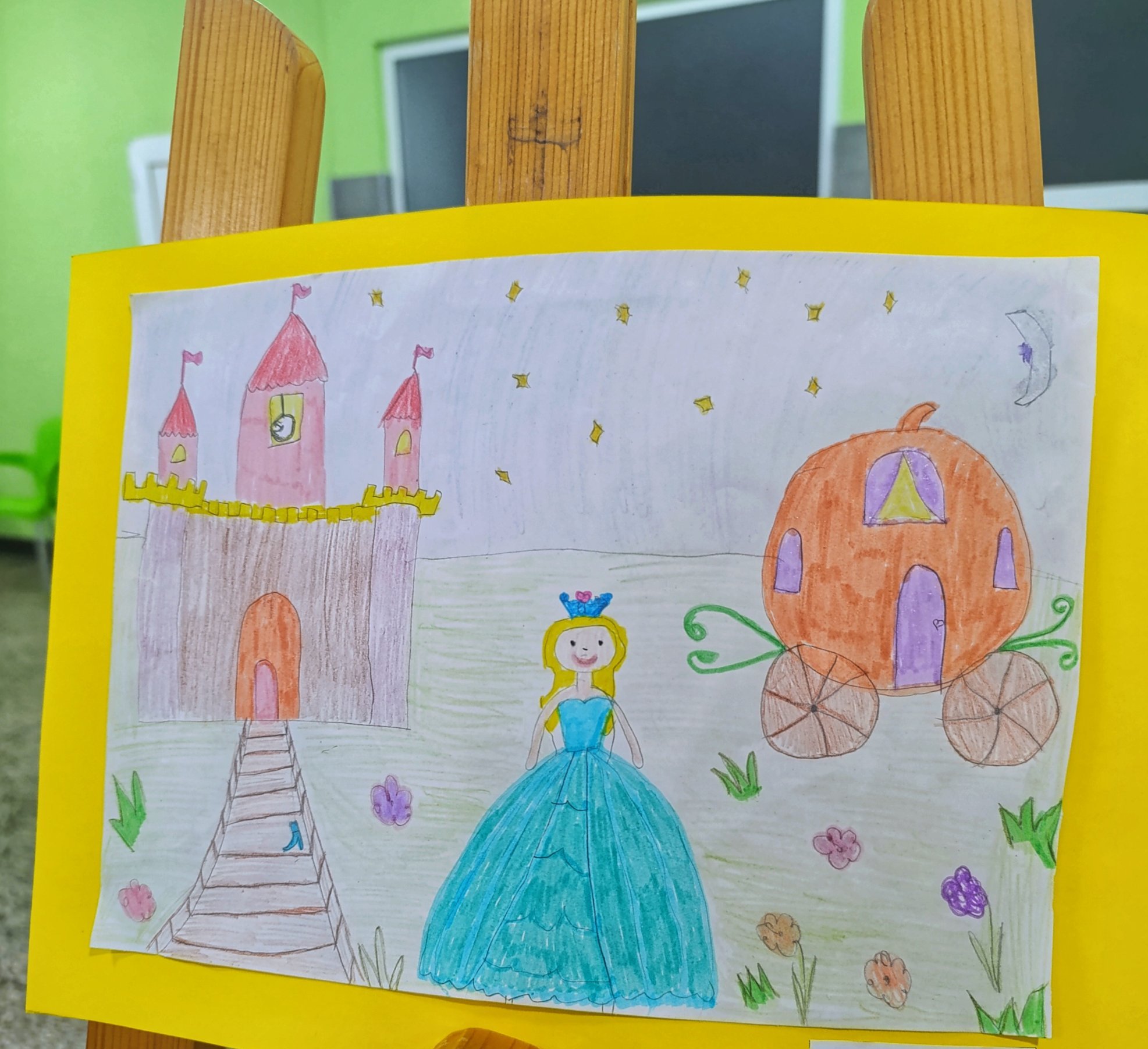 Бяхме и на награждаване тази седмица.Едно от училищата имаше конкурс за рисунка на тема приказка, дребчето нарисува Пепеляшка. Първо място спечели, много се зарадва.