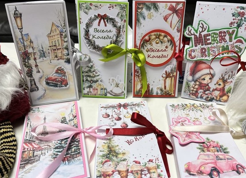 Фло,здрави и благословени да са именниците. Аз днес с помощта на децата украсихме елхата,утре продължаваме че мн дъжд. Момичета едно страхотно младо момиче изработва картички ръчно с мн любов и старание. Цената им е 7 лв . Пускам моделите ако някой си хареса ще го свържа за поръчка.