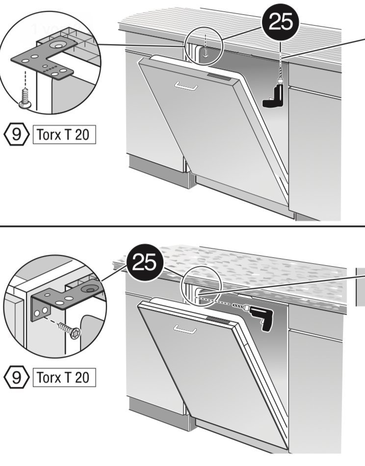 Да напомня, с нова голяма Бош съдомиална съм. При слагане на вратичка плоскост отвън и  застопоряване на машината видяхме, че липсват в комплекта винтове за странично захващане, както и в упътването липсва тякова. Иначе миалната си има отвори с тапи вътре отстрани.