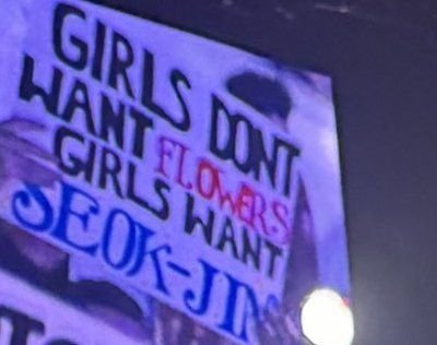 със същия надпис ,но тогава гласеше. " Момичетата не искаме цветя, момичетата искаме Enhypen"