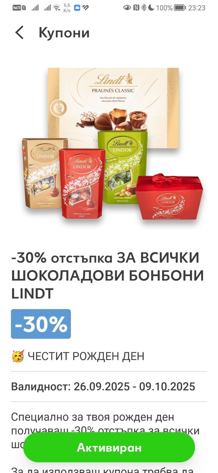 Съвсем скоро след това спряха хубавия купон и остана само за Линдт.