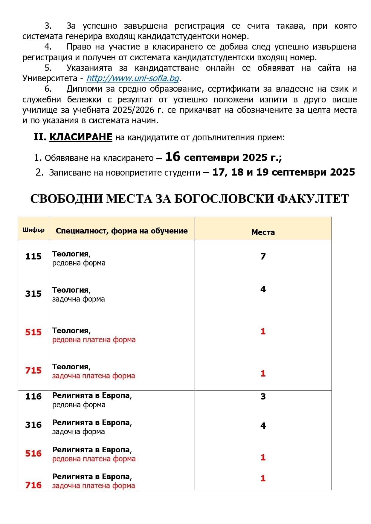 Част от факултетите в СУ обявиха допълнителен прием. Утре очакваме официално файла за всички факултети в сайта.