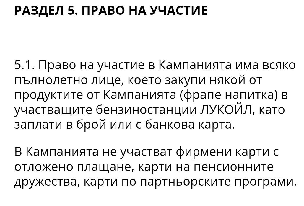 И има ли някой, дето е взел Фрапе от ЛукОйл? Отчита ми покупката като кафе в точките от 1 до 5, но никъде не пише че се участва, нали?