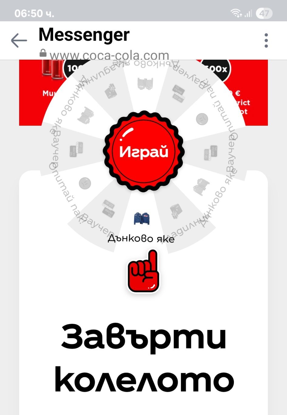 Регистрирах снощи код в Кока Кола - колело не се появи...