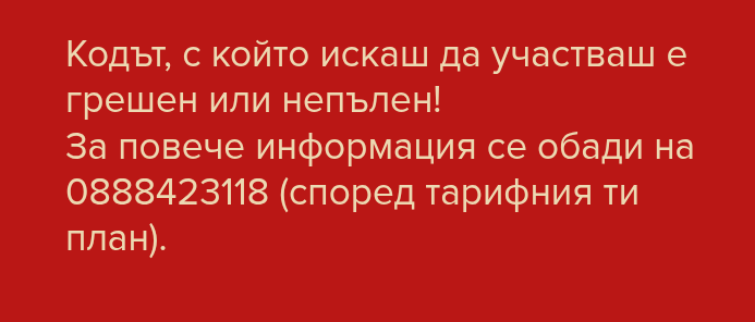 Ако сте уцелили код който съществува и не е бил регистриран ще го отчете! Това е когато има код и той  трудно се разчита. Все пак всички кодове са вкарани предварително в системата и дава грешка когато го няма там, но когато го има няма как да ви даде грешка и го отчита. Аз на един код един символ не виждах какъв е и пробвах три комбинации като го сменях и всеки път ми броеше за регистрация. Та толкова от мен. Спрях вече да играя там, че нищо не спечелих до тук. Късмет на всички които продължават да се мъчат с тези кодове!