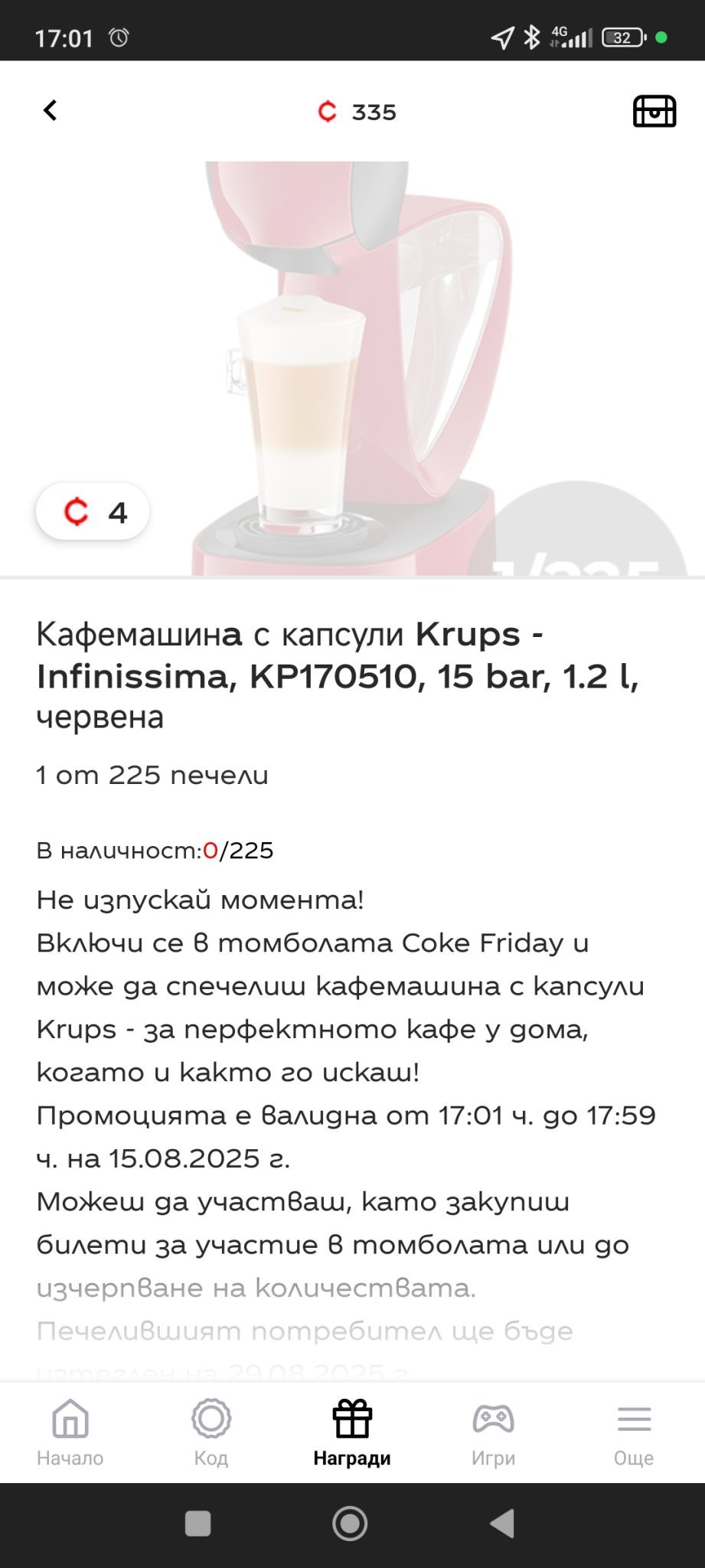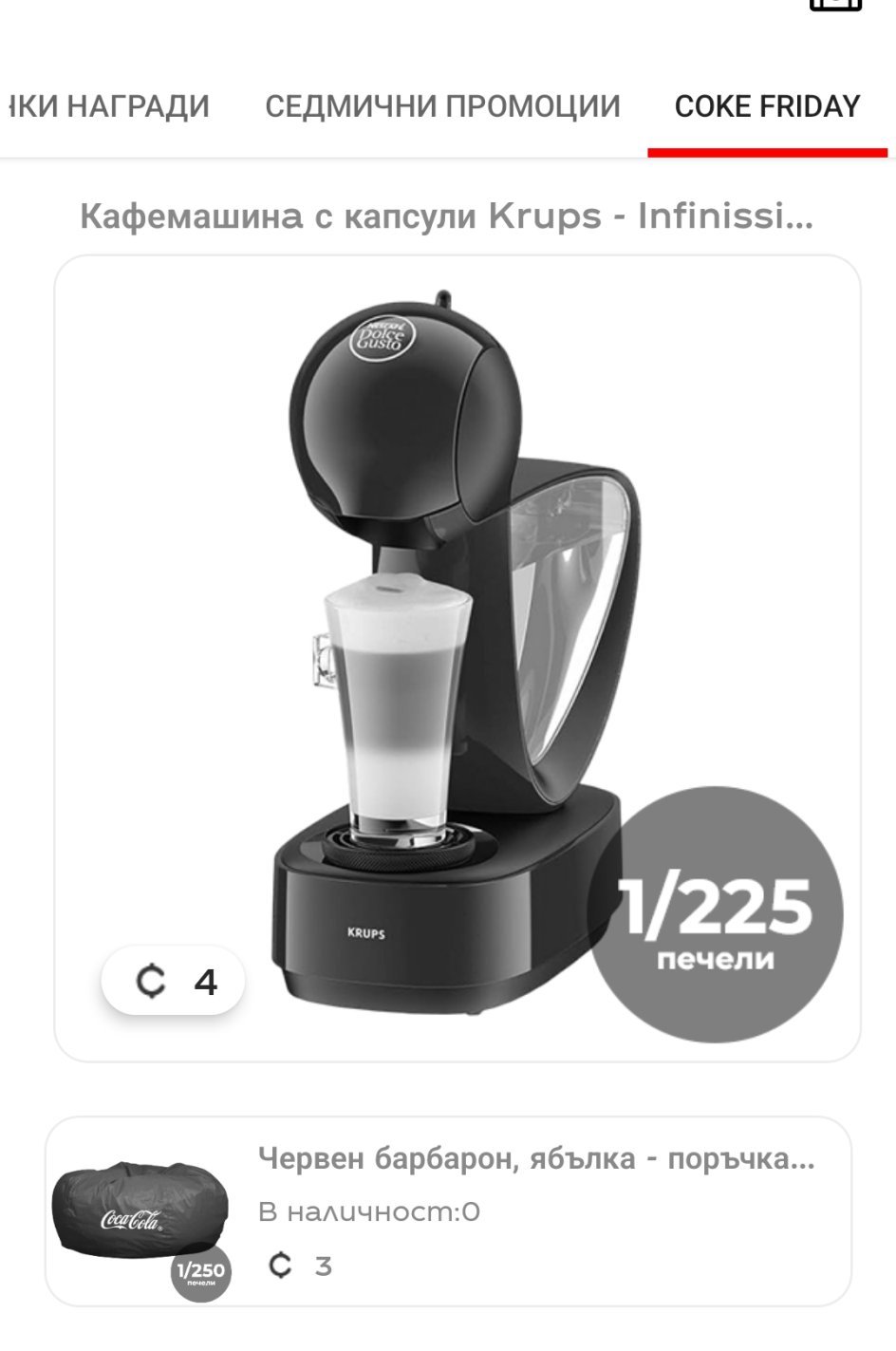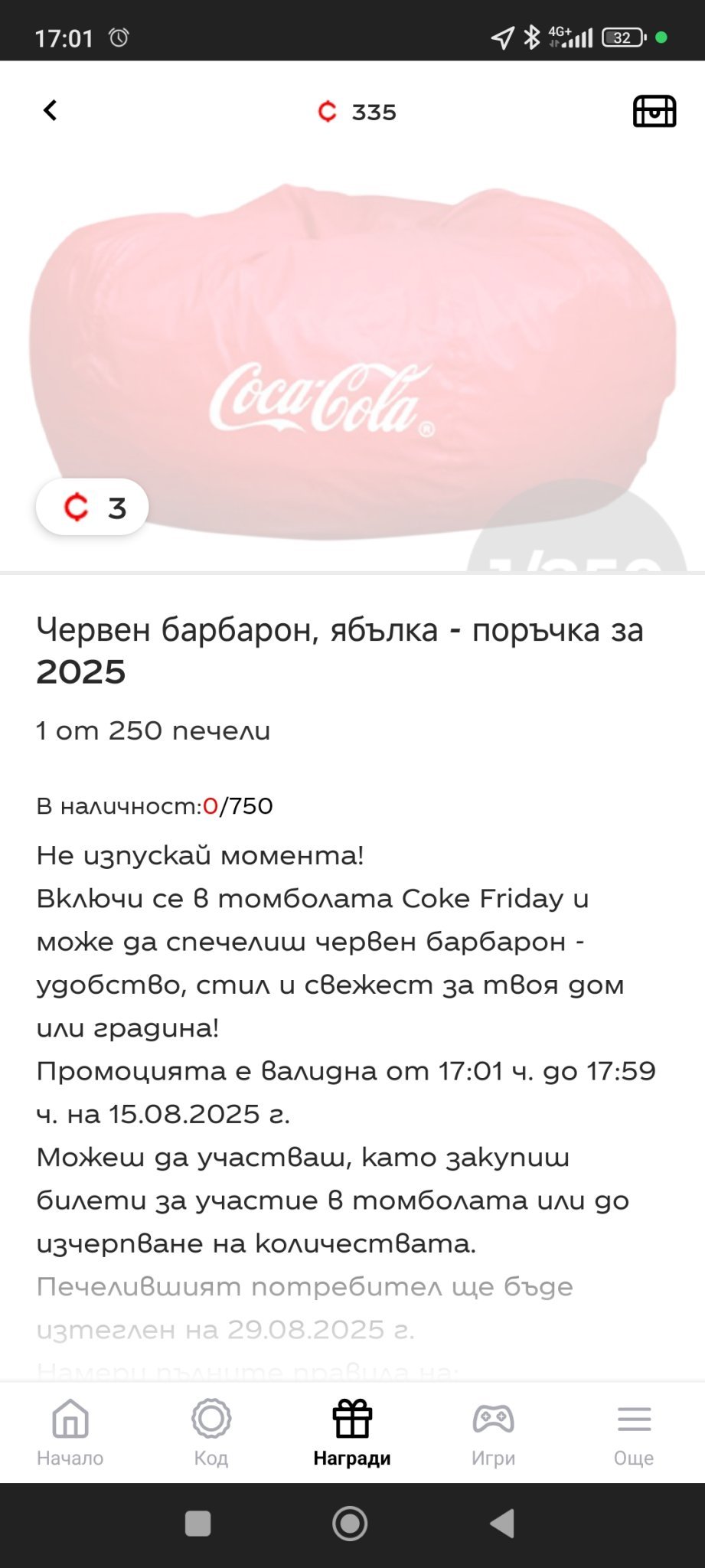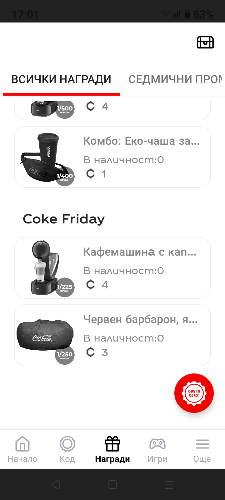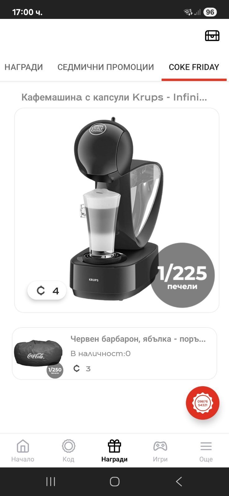 Заставам точно в 17 00 да дебна наградите на Кк ...първо не се показваха ,а изведнъж се появиха 2 пуф и кафе машина с 0 билети ...