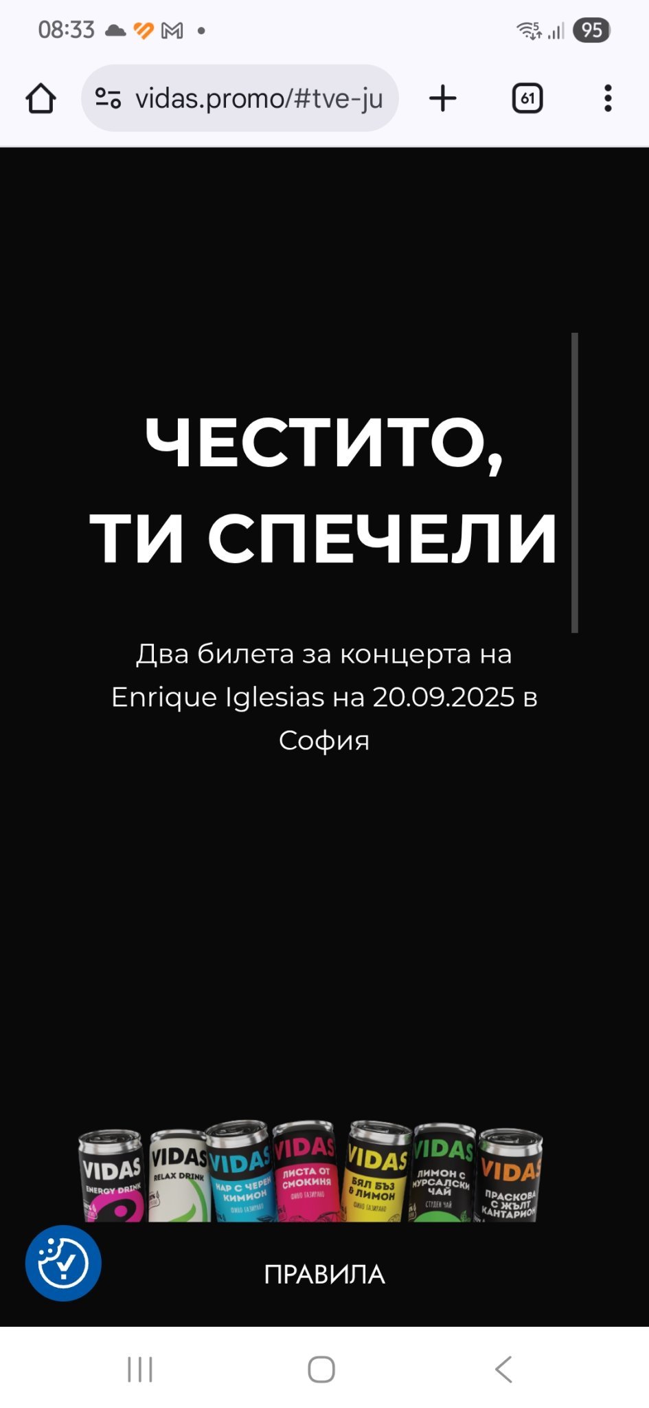 Спечелих билети за Енрике Иглесиас (йеййй) часът се вижда, много се зарадвах 🥳🥳🥳 успех на всички в игрите
