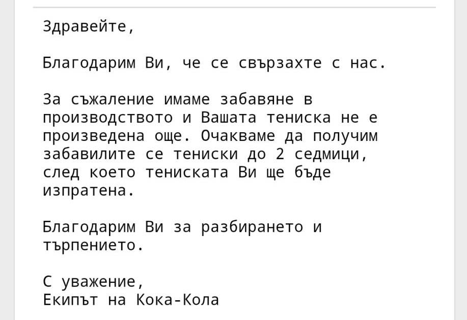 Имам отговор от КК за тениските