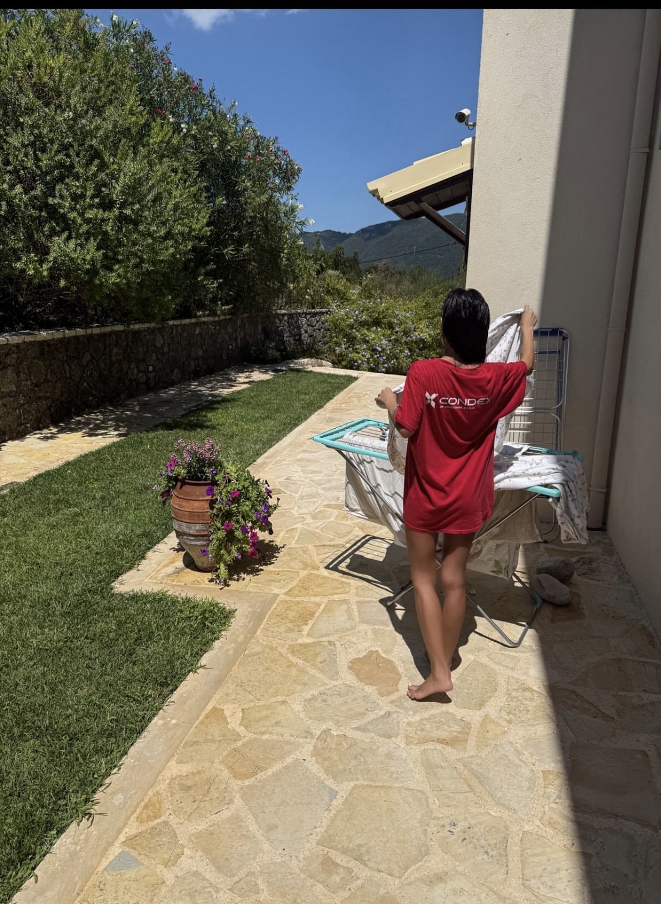 И малко продуктово позициониране. Мичка простира мокрите хавлии от плажа с тениска Кондекс( или там каквато е фирмата на настоящия  булчо). Демек - ръката, която храни и плаща вила, катамаран и Ермеси на нея в момента и на мама Данчи, сестричка, дъщеричка и прочие по веригата. Тръпна за сватбата в Корфу. Коя ли звезда от Бг ще дойде? Залагам на някой педал гримьор. С Миро беше доста обрана почерпката.