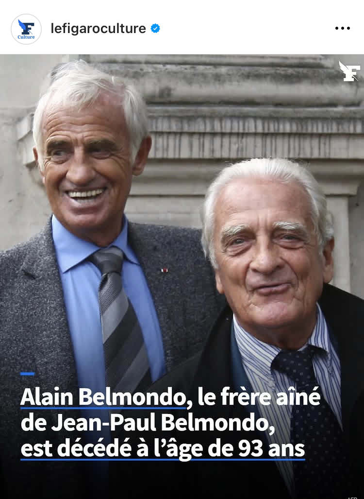 На 27/08, на 93 годишна възраст е починал големия брат на Жан-Пол Белмондо, Ален Белмондо, филмов продуцент.