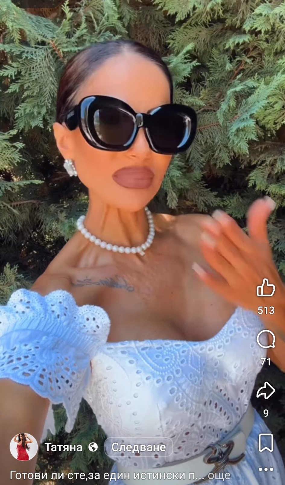 Татяна не се ли вижда на какво прилича? Какво и е на деколтето?