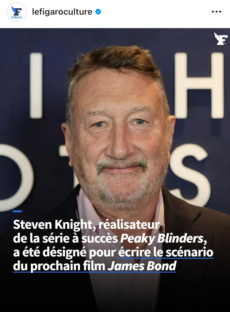Стивън Найт, режисьор на култовия Peaky Blinders, ще пише сценария на новия Джеймс Бонд.