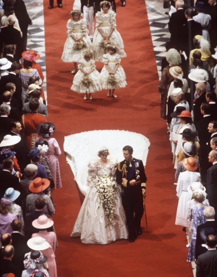 В ръкавите имало специална мрежа, за да стоят бухнали. От близо изглежда цопната в средата на огромна сметанова торта. А Чарлз  сякаш изобщо не може да се доближи.