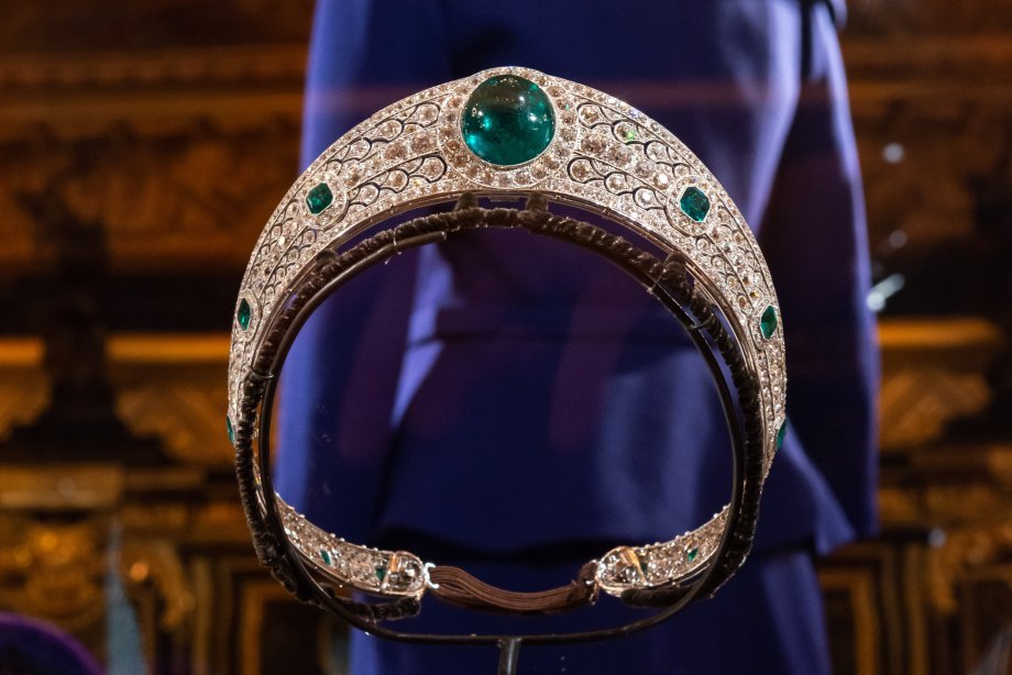 Принцесата носи тиарата, която се смята за най-скъпата и престижна в колекцията на британския монарх -  Greville Emerald Kokoshnik Tiara (на стойност между 12 и 18 милиона долара).