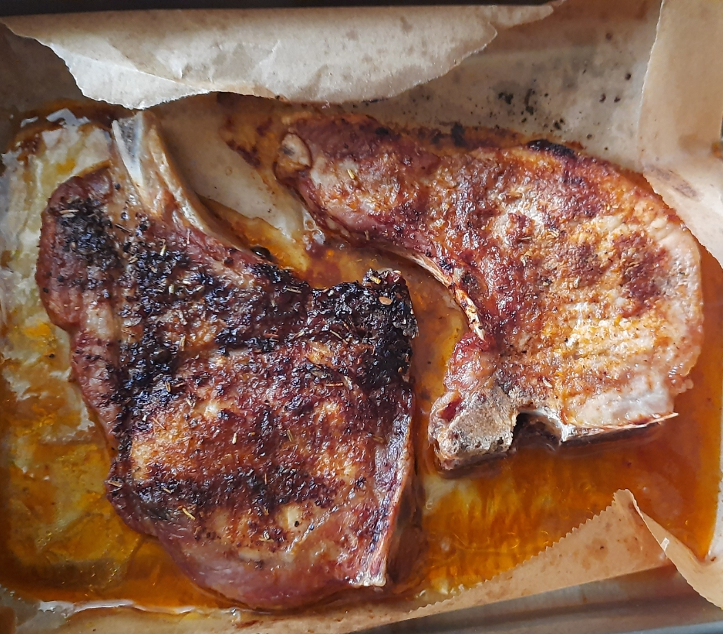 В Канада ме бяха втрещили с едни хубави дебели котлети, не тънки като нашите... И буквално ги убиха във фурната тия хора. На 180 градуса, моля ви се, все едно кекс ми пекат 🙄 И се и чудят що ставали странни. Ама странните сте вие бе, кой се гаври така с хубавата мръвка?? Joy