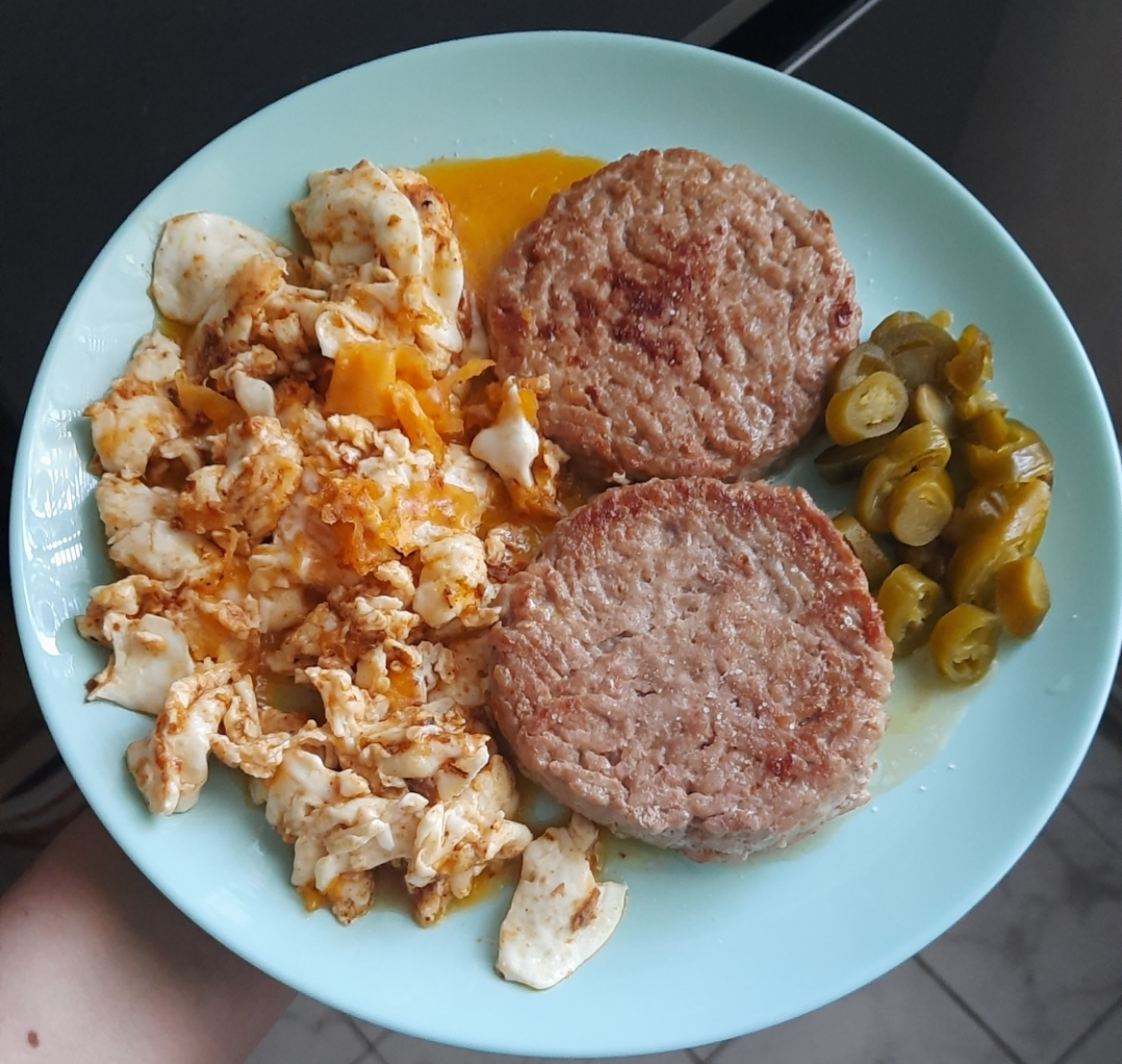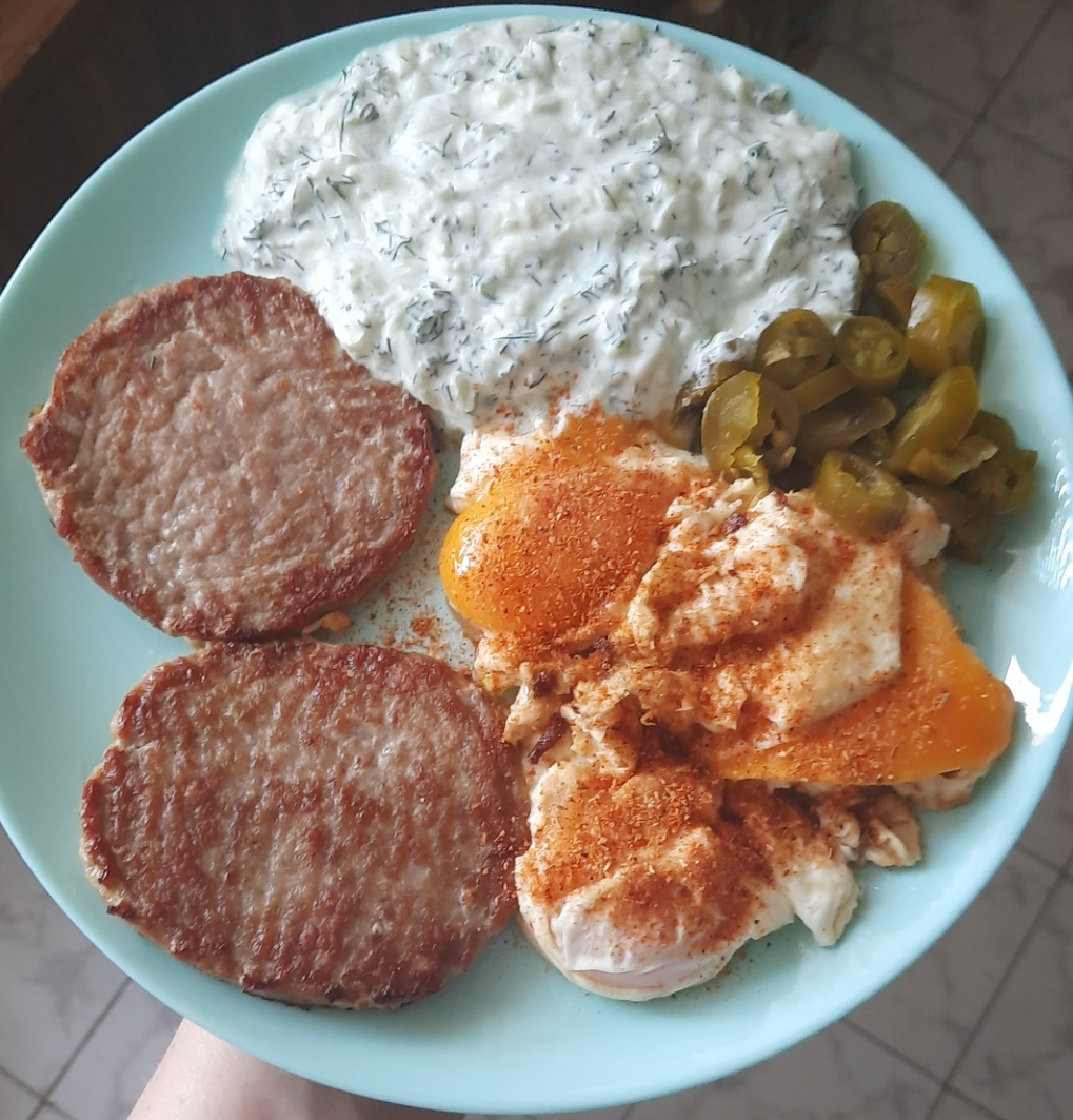 Едното хранене днес - бургери, яйца и Халапеньо: