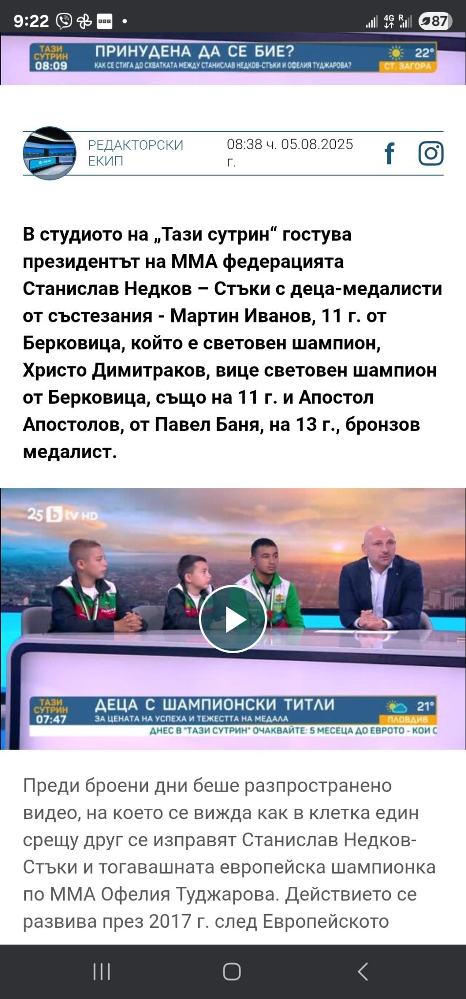 Тази сутрин за първи път от много години гледах сутрешен блок по БТВ и се шокирах какъв скандал в ефир се получи между представител на ММА федерацията, който представяше 3 деца спечелили титли и медали от световното първенство и журналистката, водеща предаването. Не вярвах на ушите си!