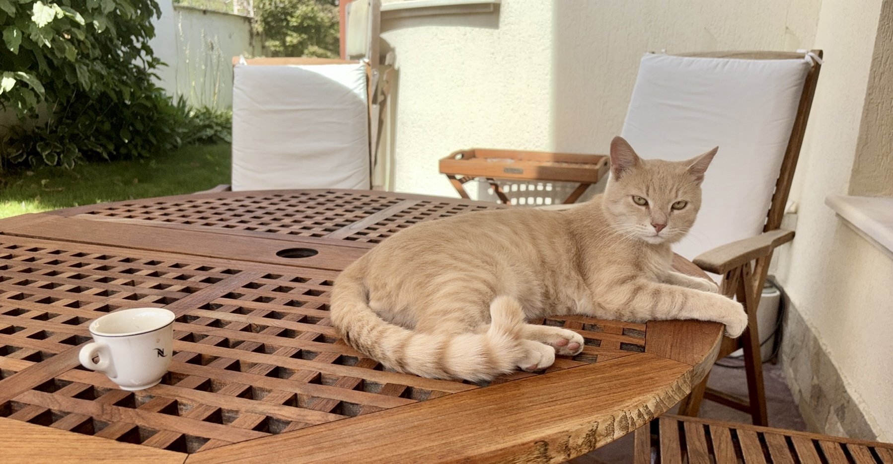 Предиобед пихме кафе с комшийката котка Пинко, която няма никакъв проблем да иска да живее и у нас;
