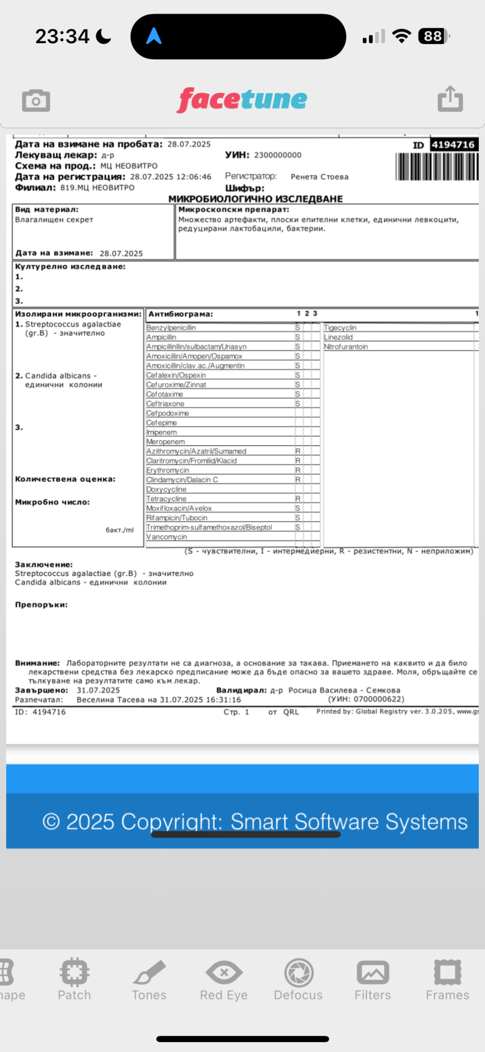 Днес д-р Боянова каза че вижда разтеж само на Кандида Парапсилосис
