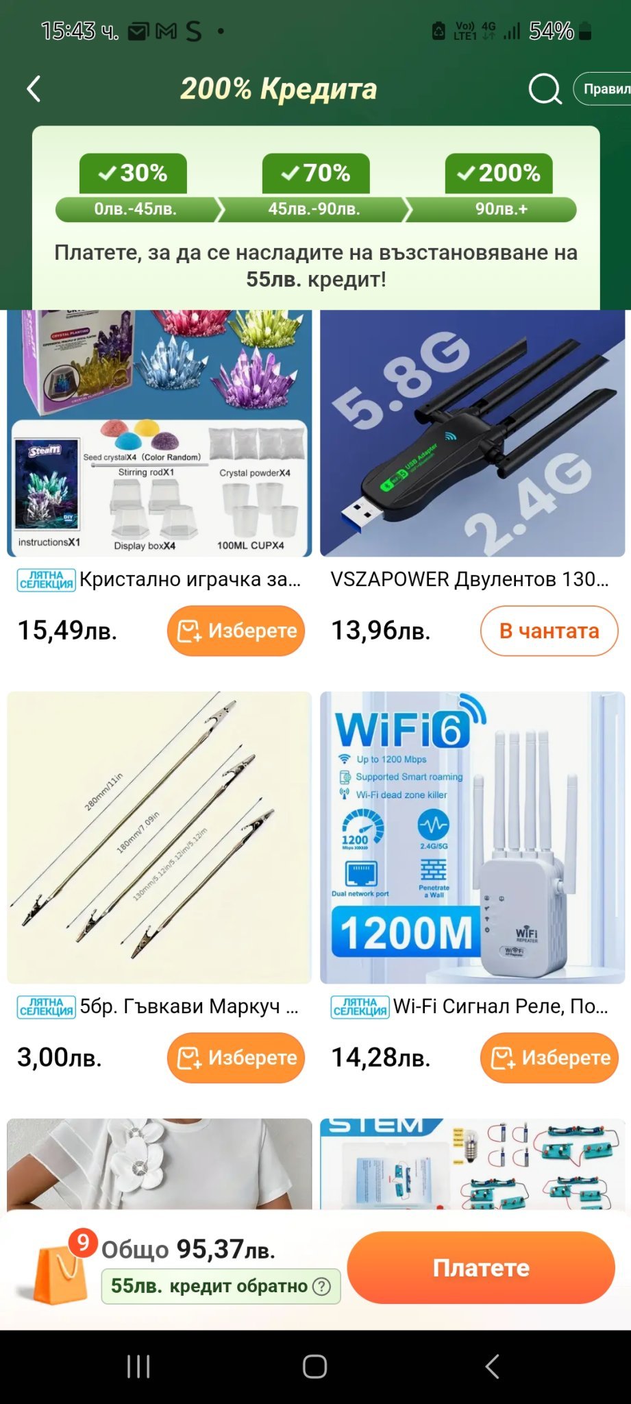 При покупка над 76,15 лв. връща 58, което е супер!
