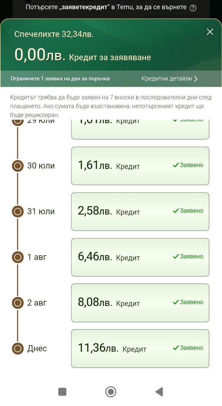 Можеш ли да потвърдиш дали при плащане с наличен кредит ти дава нов кредит, направо снимка направи? Това означава застъпване на кредити. То това беше най-ценното, че можеш с подарени пари да получиш нови подарени пари, а не че ти дава всеки ден нови промоции.