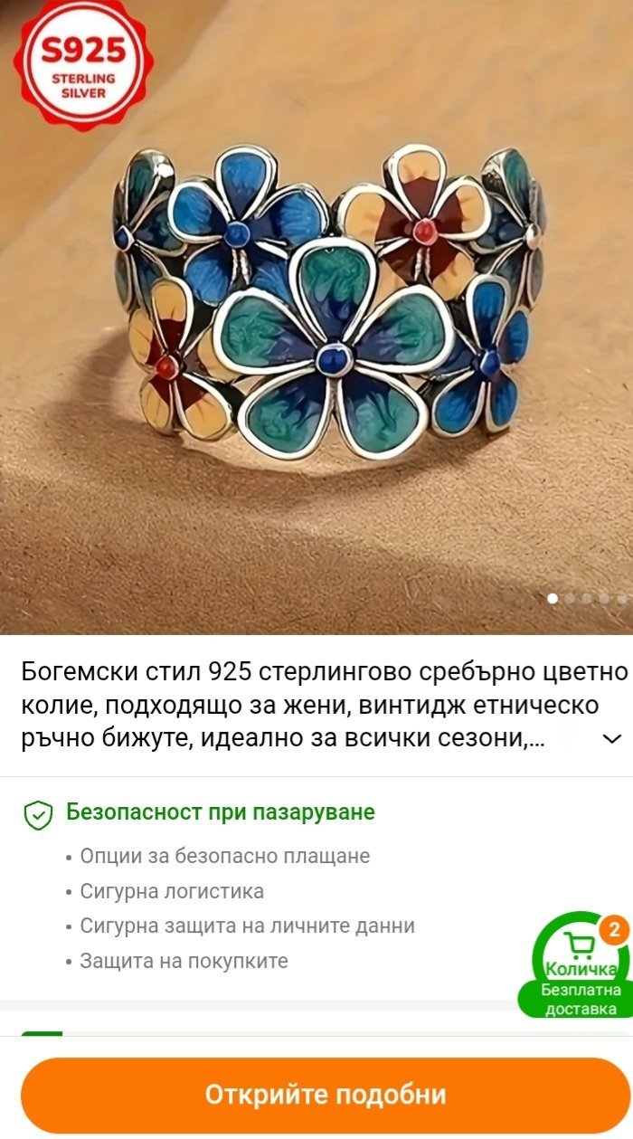 14./ Пръстен - боклук. Нищо общо със среброто. Няма печат. Нося сребро от ученичка и веднага разбрах. Поисках връщане и възстановяване на средства. Възстановиха без връщане. Експериментирах да го нося 2 дни, да мия и да се къпя с него. Покритието му падна и почервеня отдолу още на 2 - рия ден: