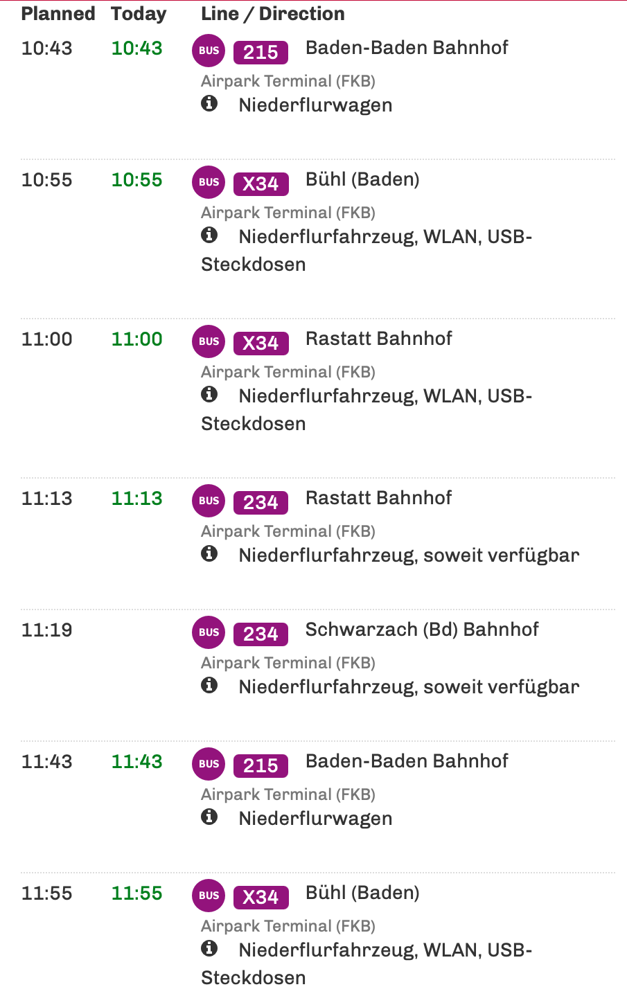 Това е официалния сайт на летище Карлсруе-Баден Баден и конкретно страницата с автобусите, които тръгват до летището.
