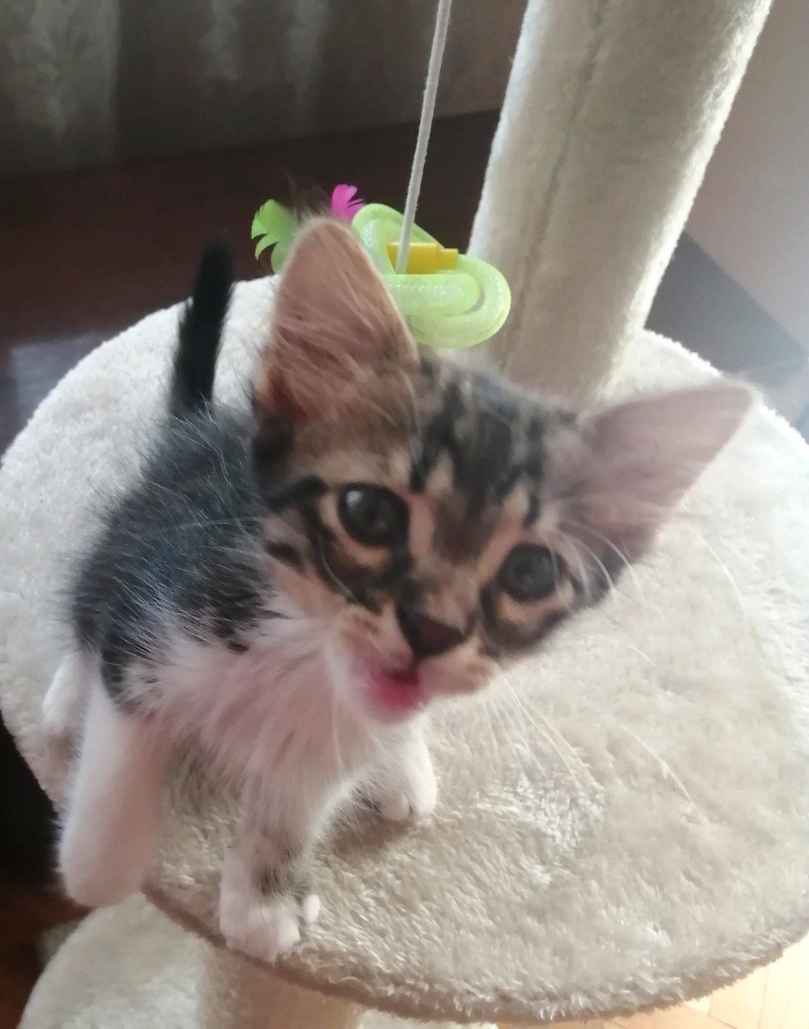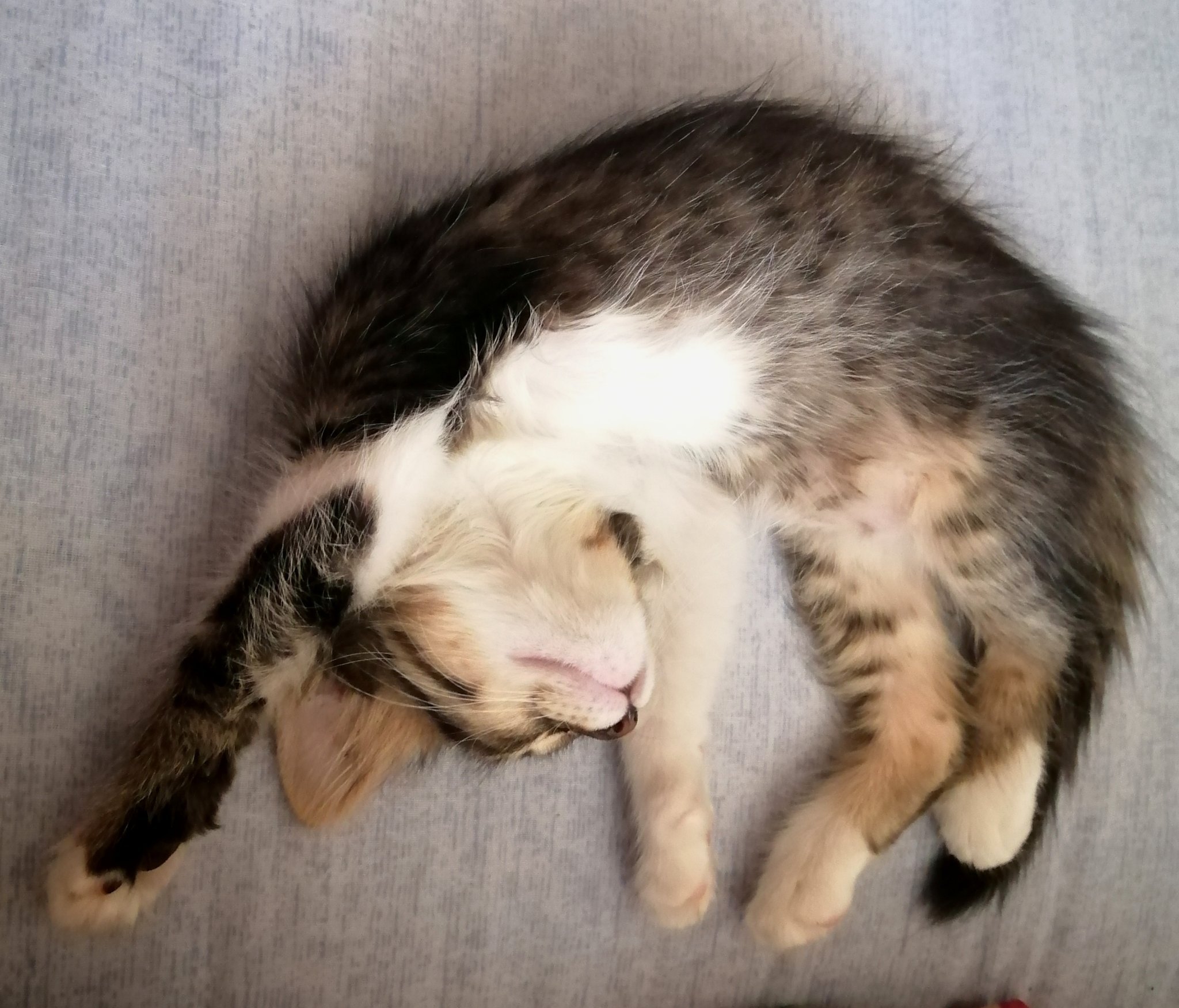 Скача, игра, гърби се, гони си опашката и най накрая така се умори, че просто се тръшна и заспа. Joy Спи като тъпанче. Joy Голяма забава е Джу и е толкова добричка милата, коте за чудо и приказ.