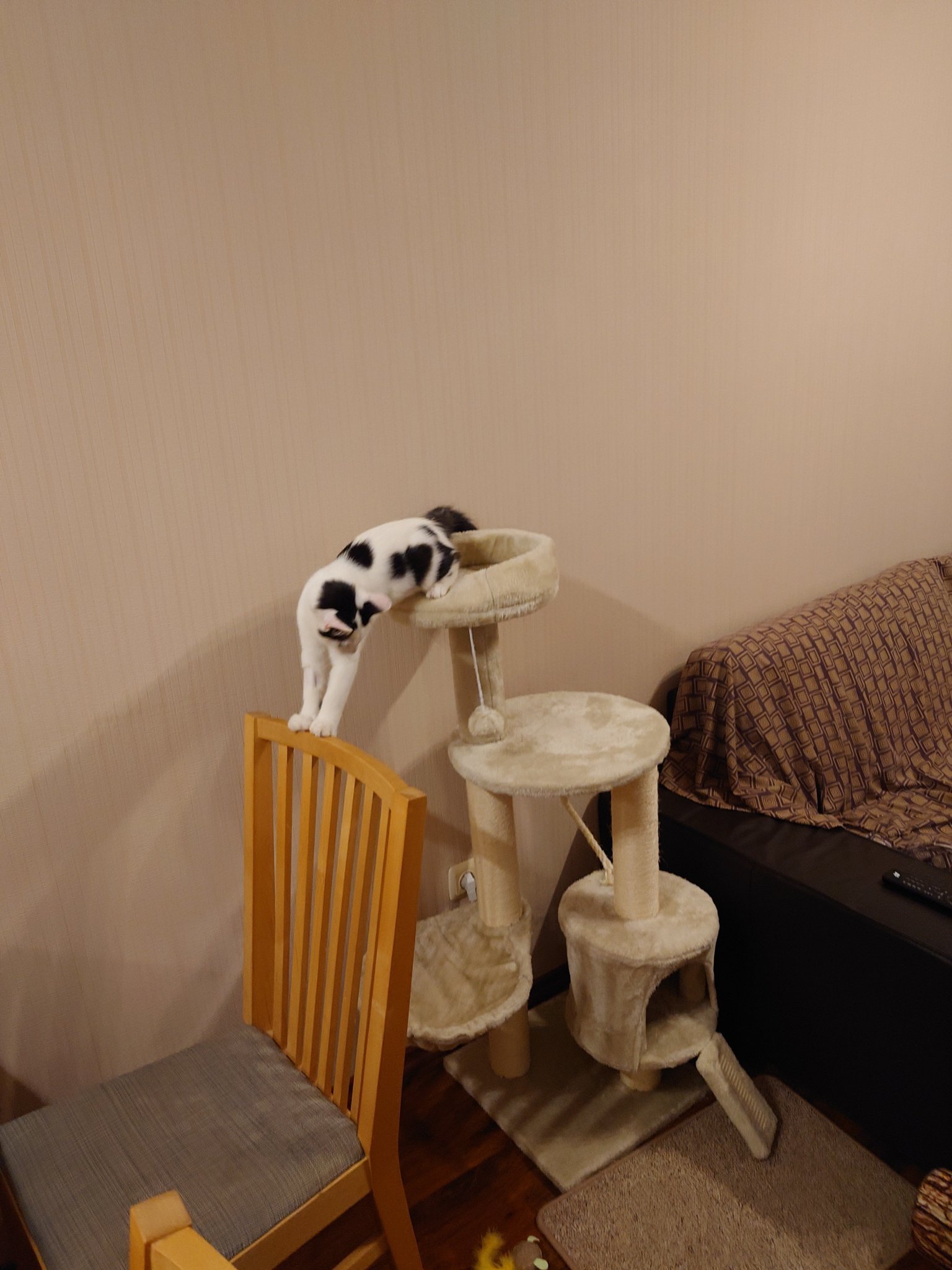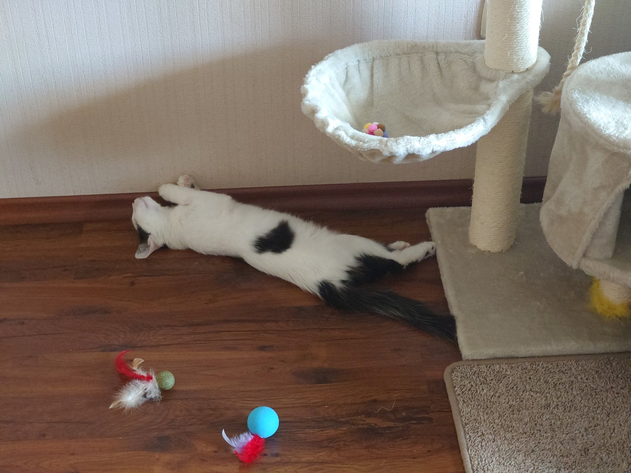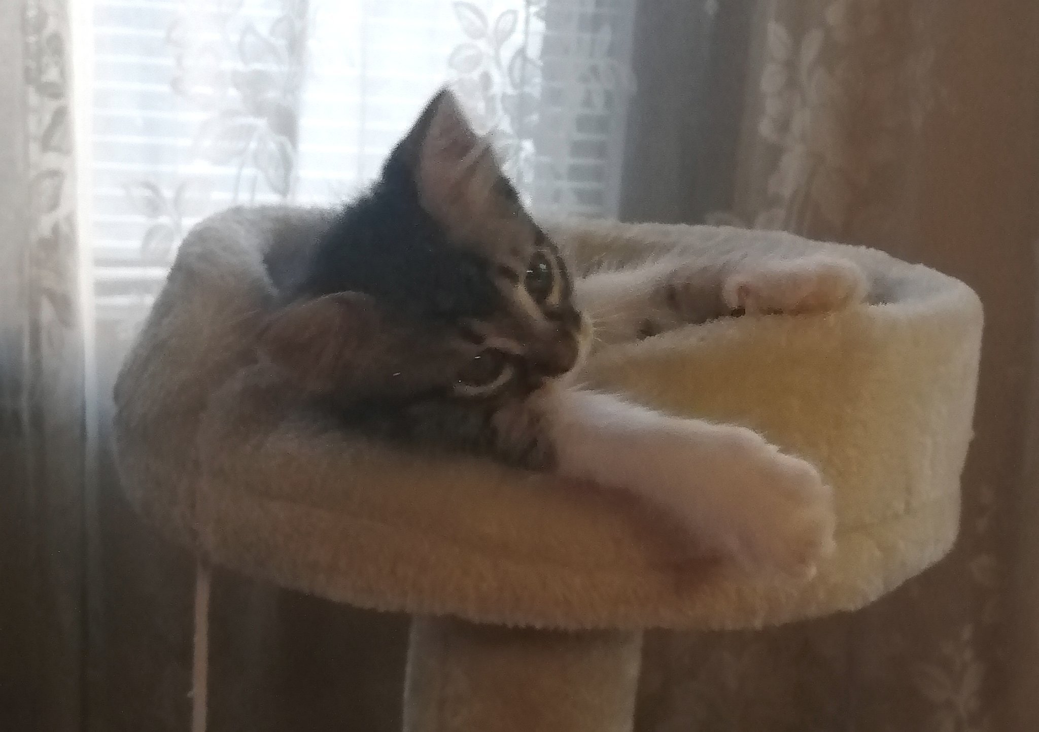 Тук вместо котешка катерушка имаше кучешко диванче, но мястото за спане пак беше на пода до него, с вирнати крака Smile