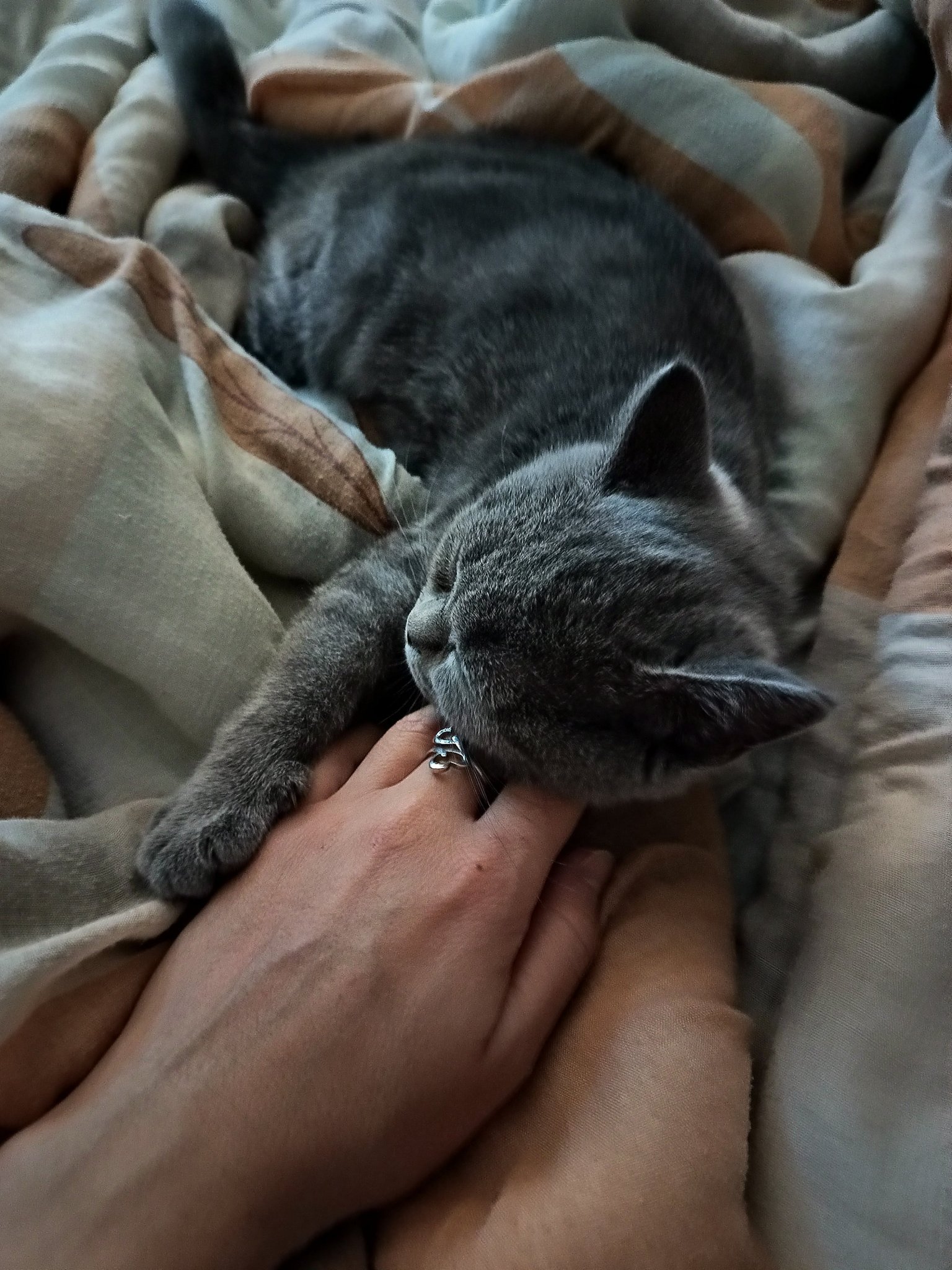 Иначе през нощта имахме един час, в който се разтопи до мен, но като се събуди пак си отиде при децата.