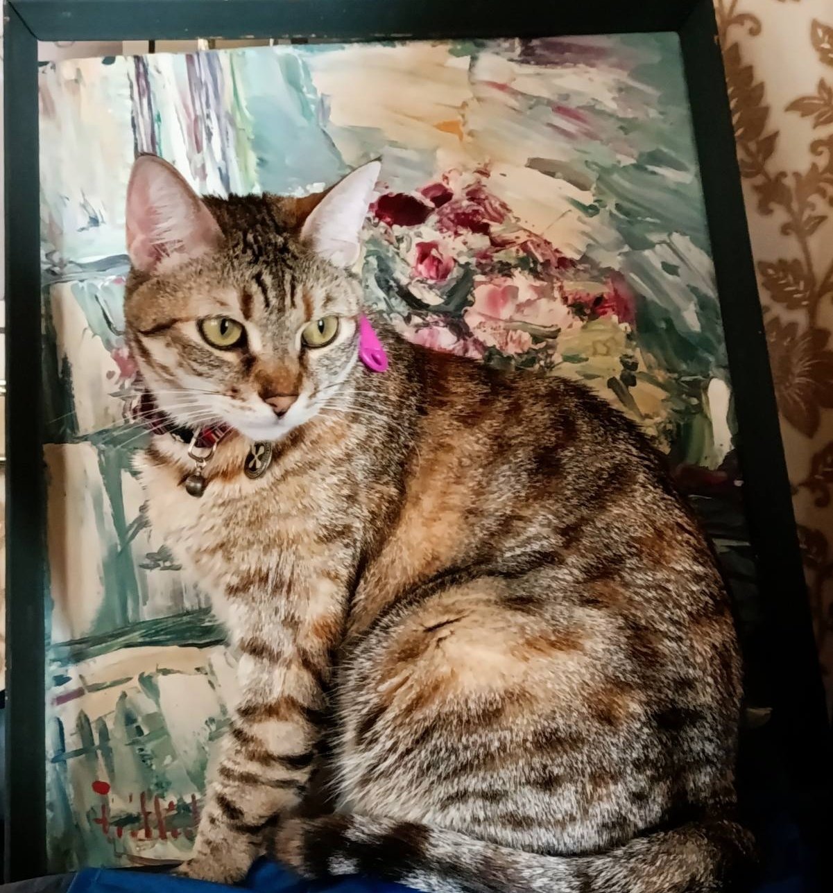 Не снимам Тери, защото е редово таби. Но днес: свалила съм картина, за да възстановя отчупено ръбче на рамката и все не идва ред, а Терата се центрира и предизвикателно позира:
