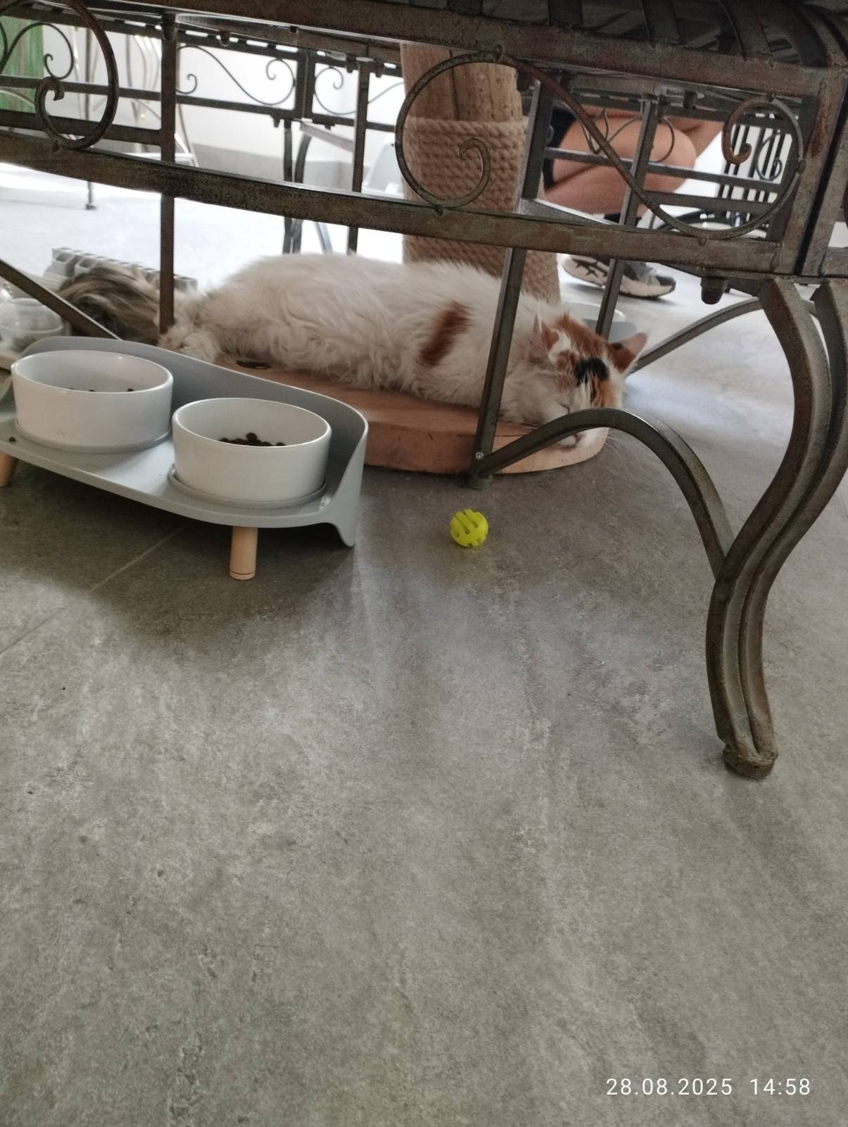 Нашата Кая на 4м е 2.100кг, коремчето и вече е много голямо. Увеличих с 10гр гранулите, защото гледам етикетите на храната, но не искам да я прехранвам. А тя някой път през 15-20 минути е на купичката, е има и пауза от няколко часа през деня, в които спи и не яде. Но усещам,че като си дойде ММ и я види ще ми се кара,че я прехранвам. Все пак на камерата на телефона не изглежда толкова голяма,колкото всъщност е. Ама ми е толкова пухкава и сладка 😁. Преди няколко дни поглеждам детето и по блузата и косми от Кая, до сега не пускаше косми. Започна много да се скубе. Дали е от възрастта или от сезона не знам, но започнах да я реша всеки ден. Е не е нещо фрапиращо за притеснение,скубе си се като нормална котка, но понеже до сега почти не съм виждала паднали косми от нея ми направи впечатление.