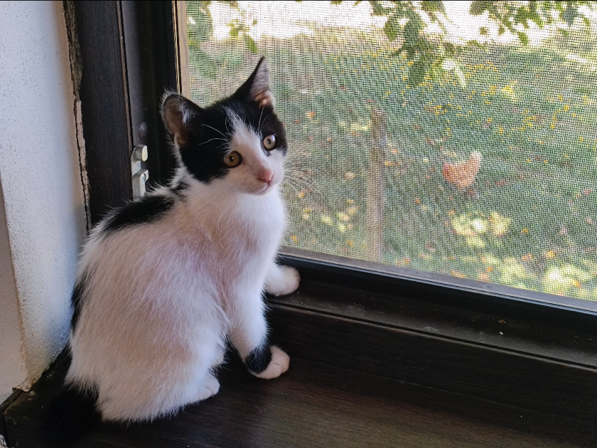 Като съм в кухнята и ми прави компания, наблюдавайки кокошките 😊