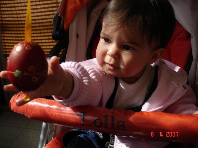 А ето и бузанката ми, която вече е с омазана червена муцунка от яйцето: